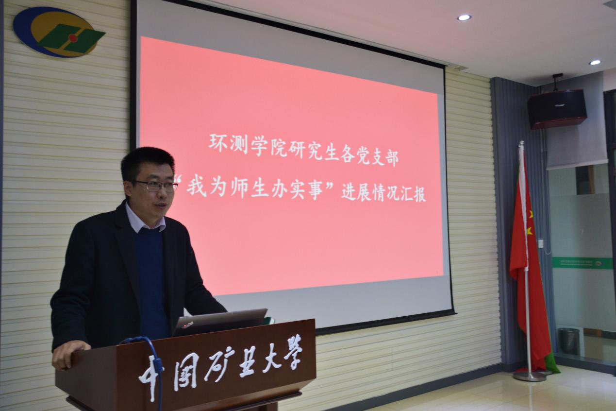 A512会议室举办。环测学院党委副书记韩福顺、研究生兼职辅导员景湘丞、王铜及各研究生党支部书记出席本次党日活动。