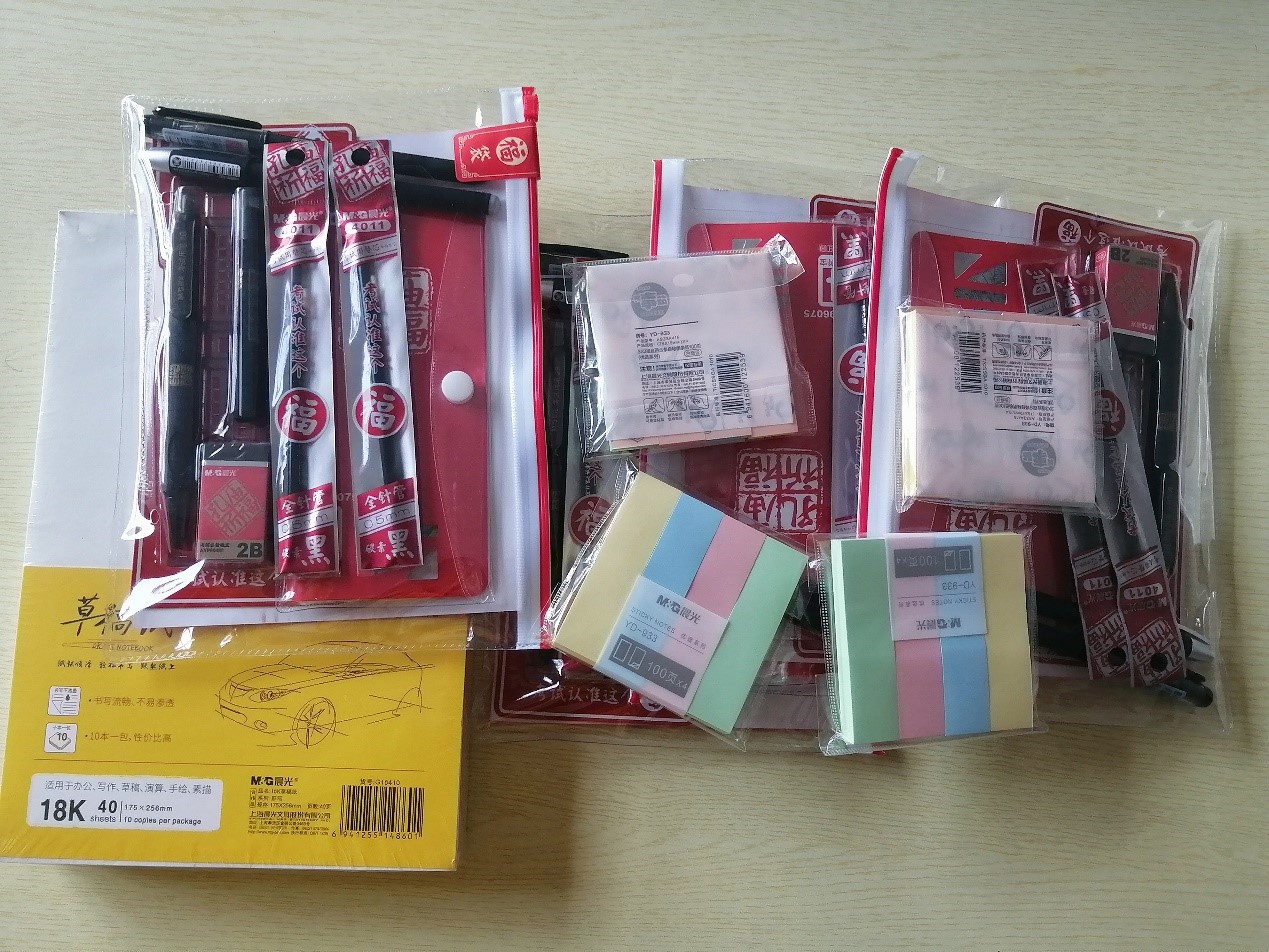 老师们为考研学生送上考研必备品,包含铅笔、橡皮、铅笔刀、水性笔、文具袋以及写着考研祝福的明信片。每件礼物都寄托着老师和同学们的祝福与期望,祝福考生们在考试中都能够“胸有成竹,熠熠生辉”,披荆斩棘,一举上岸!