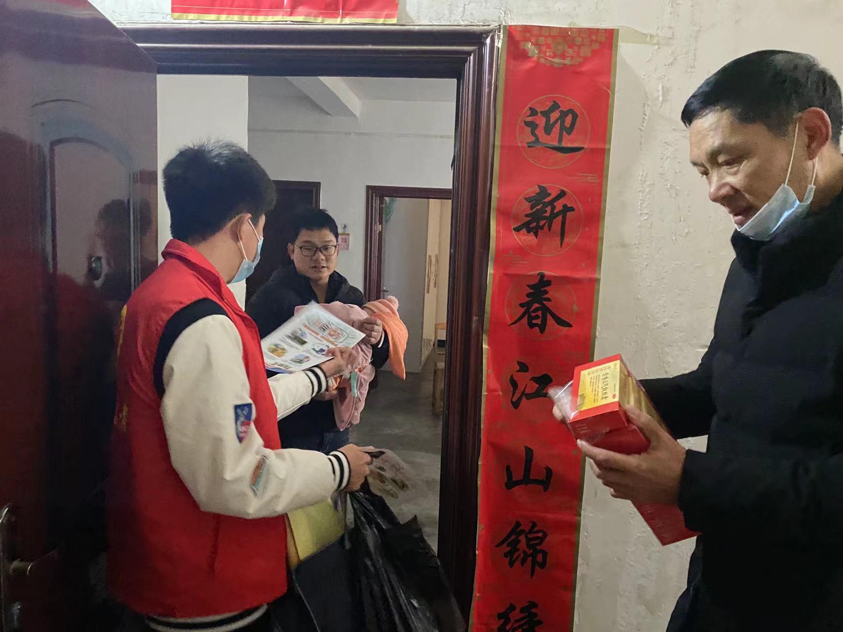活动期间,为增强居民的消防安全意识,实践团同竹溪县城关镇幸福社区工作人员一起走街串巷,深入到各小区,到居民家中开展消防知识宣传活动,全力提高居民的防火意识和消防安全责任意识,为社区居民创造一个安全的居住环境。与此同时,实践团协助社区工作者在小区入口、小区单元楼道口等醒目位置张贴了冬春消防安全宣传海报,号召居民学习消防知识、增强消防意识、排查消防隐患、谨记防火安全,一起过平安快乐年。