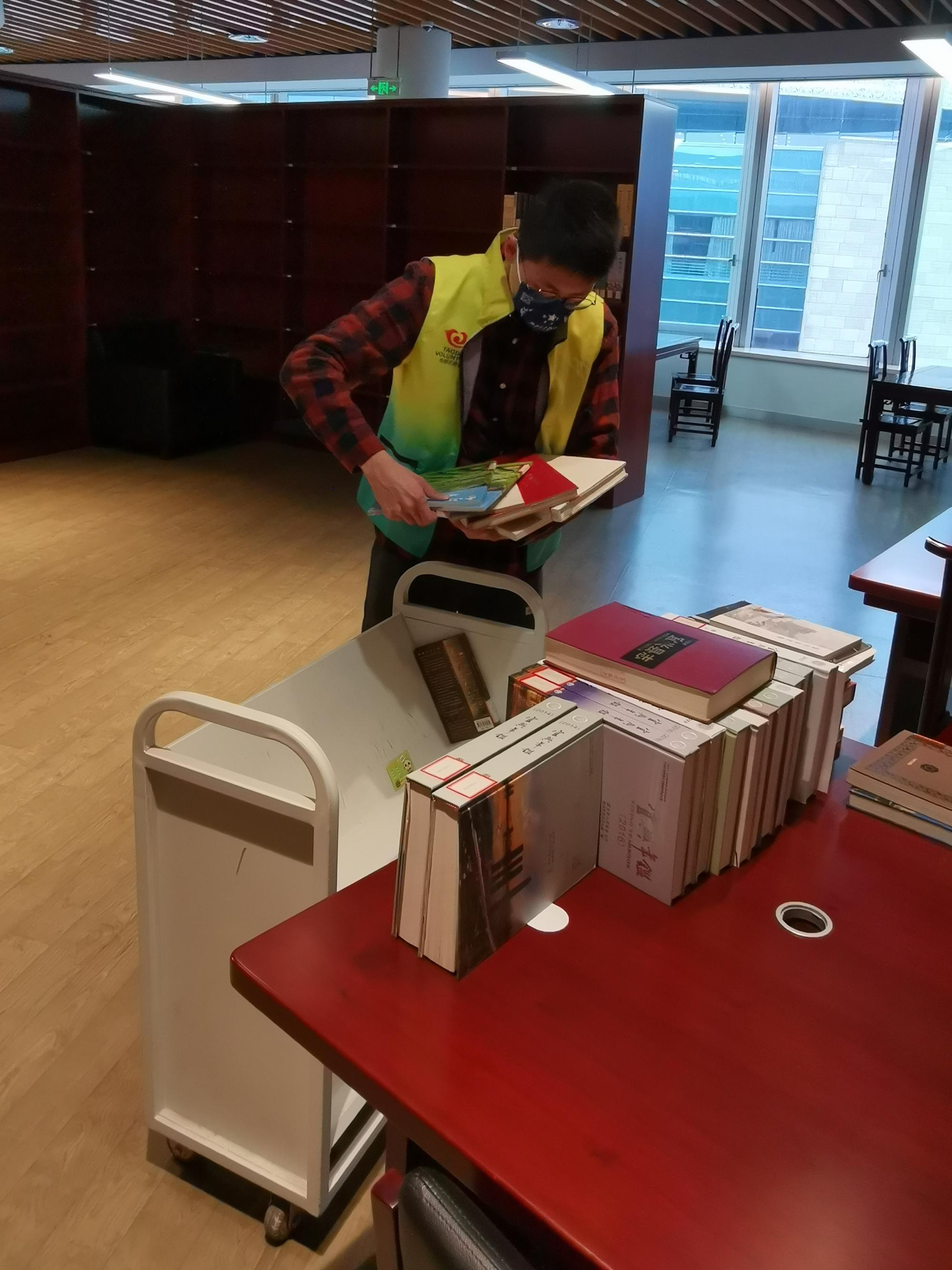 19级地信1班学生谢子涵报名参加了江苏省宜兴市图书馆举办的公益活动,协助图书馆工作人员进行书本整理等工作。