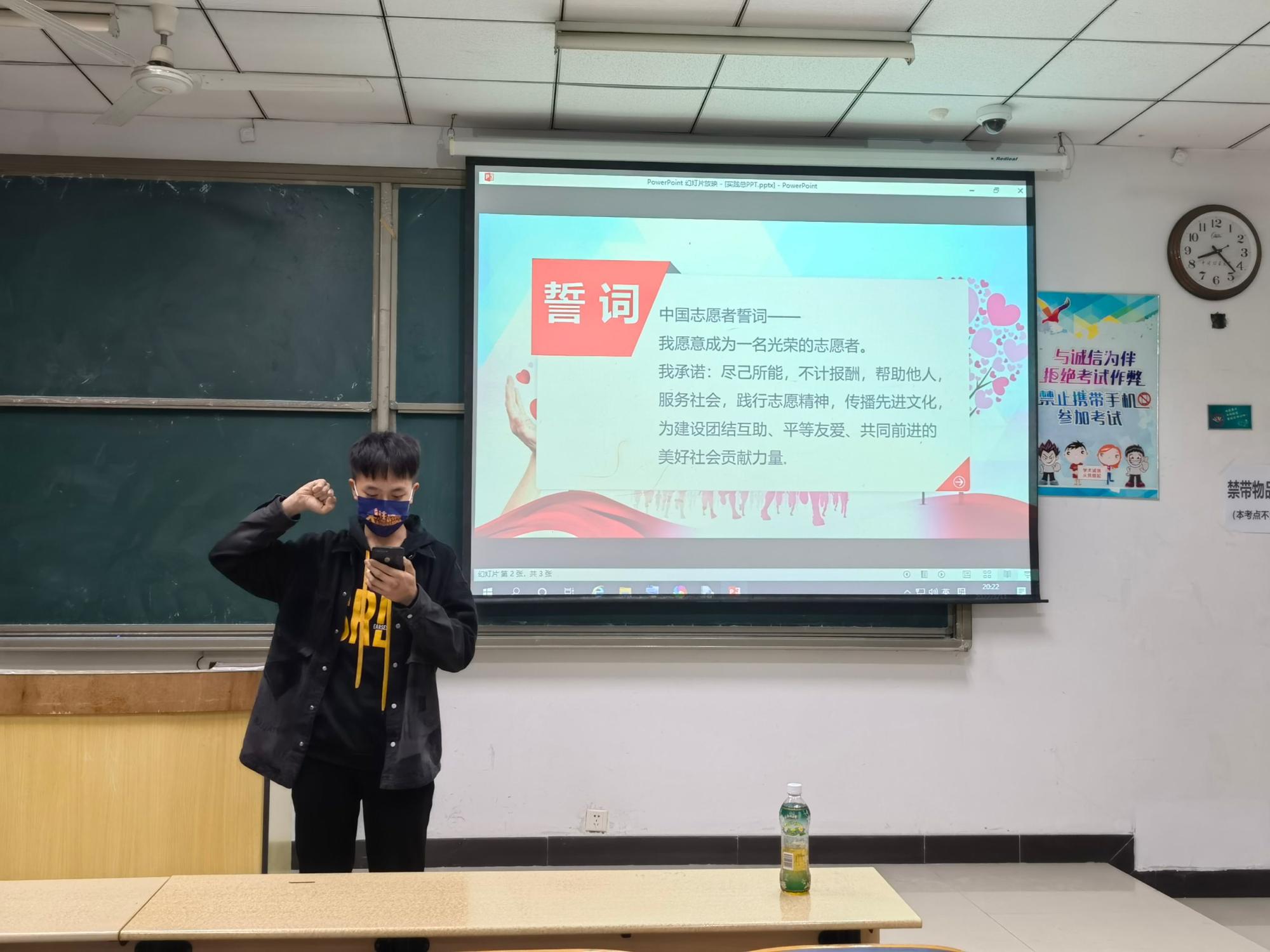 活动初始,两个班级的同学按照预先设定的展示顺序有条不紊地上台展示,参与实践展示的同学通过PPT、视频等方式叙说了社会实践的具体过程,并用丰富的照片材料加以补充。台下同学为参与实践分享的同学送上热烈的掌声。随后,还未参与社会实践的同学对其他同学的社会实践表示赞同,并分享了参加及此次活动的感受。