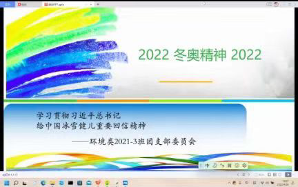 环境21-3班团支部举办了主题为“学习贯彻习近平总书记给中国冰雪健儿重要回信精神”的线上团日活动。
