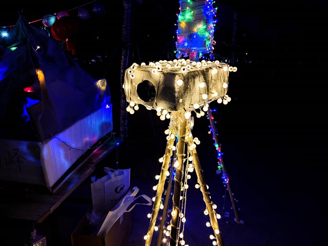 学生干部有序将花灯搬至明德礼堂外。下午5时,展会亮灯开展。展会现场,各学院花灯各异,百花齐放,花灯这一传统艺术与现代艺术相融合。