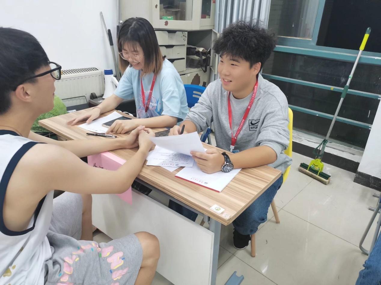 在环测学生会活动室,团委、学生会、新闻传媒中心、青年志愿者协会、心理自助中心等9个学生组织和社团在桃五二楼开展各部门招新面试活动。各部门主要干部担任面试评委,针对前来报名的新生表现为本部门甄选干事。此次招新面向明升体育