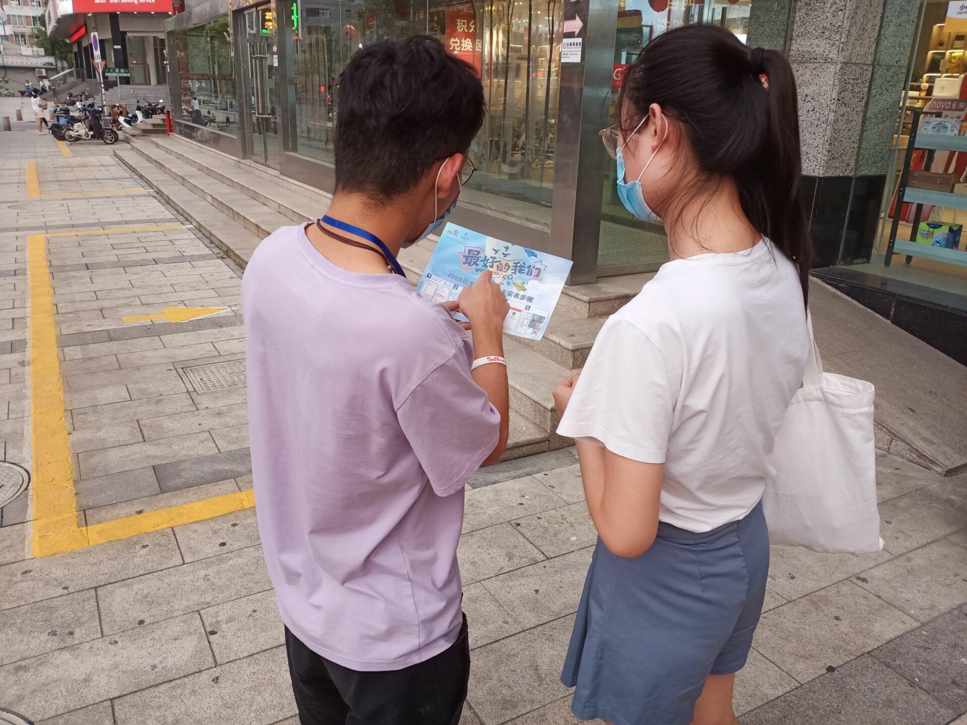 向路人介绍联通品牌宣传活动