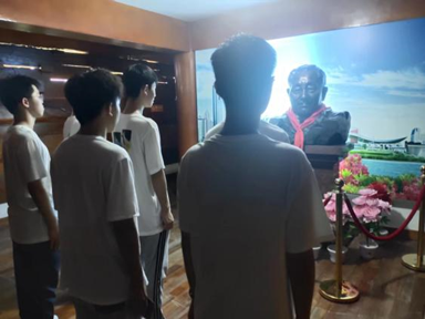 8月12日,陈宇凡同学前往巡返村的红色革命遗迹“将军鼎”接受红色教育,继承先辈留下的“红色遗产”。为庆祝中国人民解放军建军95周年,焦作市巡返村铸造将军鼎,鼎上镌刻240名中将以上开国将军的头像和名字。宝鼎高4.5米,直径3.6米,重达5吨,由纯铜铸造而成。他们以这种方式表达了对所有为建立新中国而付出生命和做出贡献的先烈和英雄们的崇高敬意。