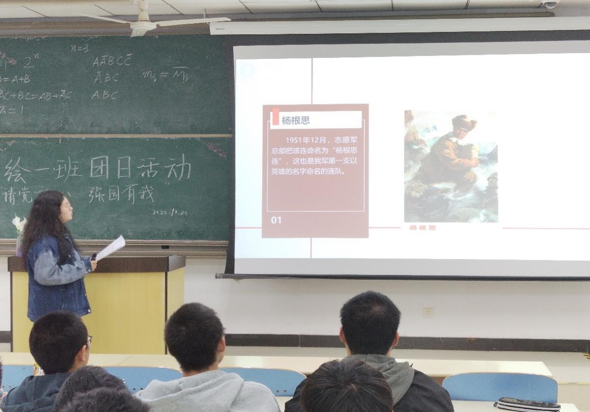 活动中主持人以党的二十大为契机,通过对其的科普性提问,由浅至深引导同学思考处在新时代的我们青年人的历史定位,最终引入“请党放心,强国有我”的主题。随后,主持人回顾党的历史,并分享以杨根思、邱少云等杰出青年党员事迹,激发了同学们勇担历史重任的爱党爱国情怀。班上同学踊跃上台演讲,讲述自己对爱党爱国的深刻理解与思考。最后以全体成员观看觉醒年代影视剧混剪视频结束活动。最后,主持人对团课教育活动总结并再次强调“请党放心,强国有我”的主题。