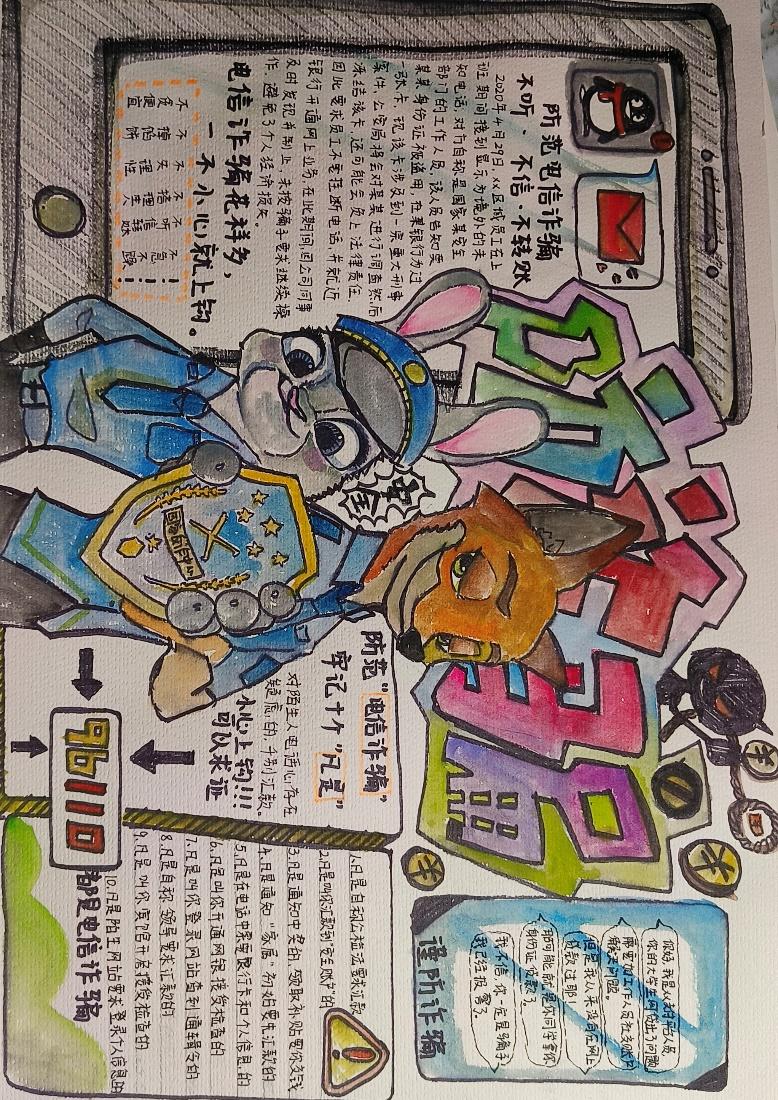 本次活动不仅激发了同学们的创作热情和艺术才能,也增进了同学们对反诈知识的理解和掌握。同时本次活动也是是一次成功的实践与探索,对于提升同学们的反诈能力、丰富校园文化生活、营造安全有序的校园环境都起到了积极作用。