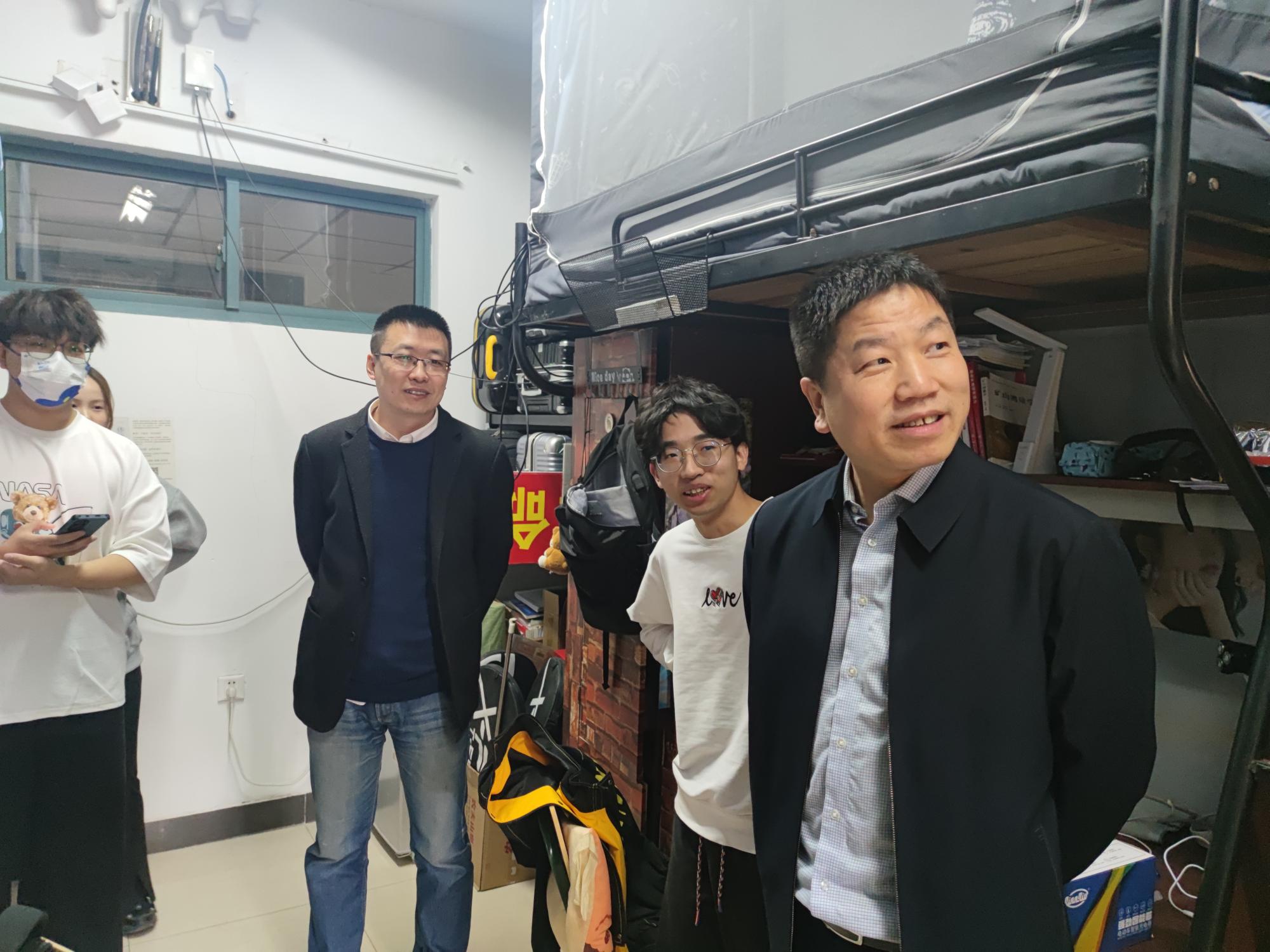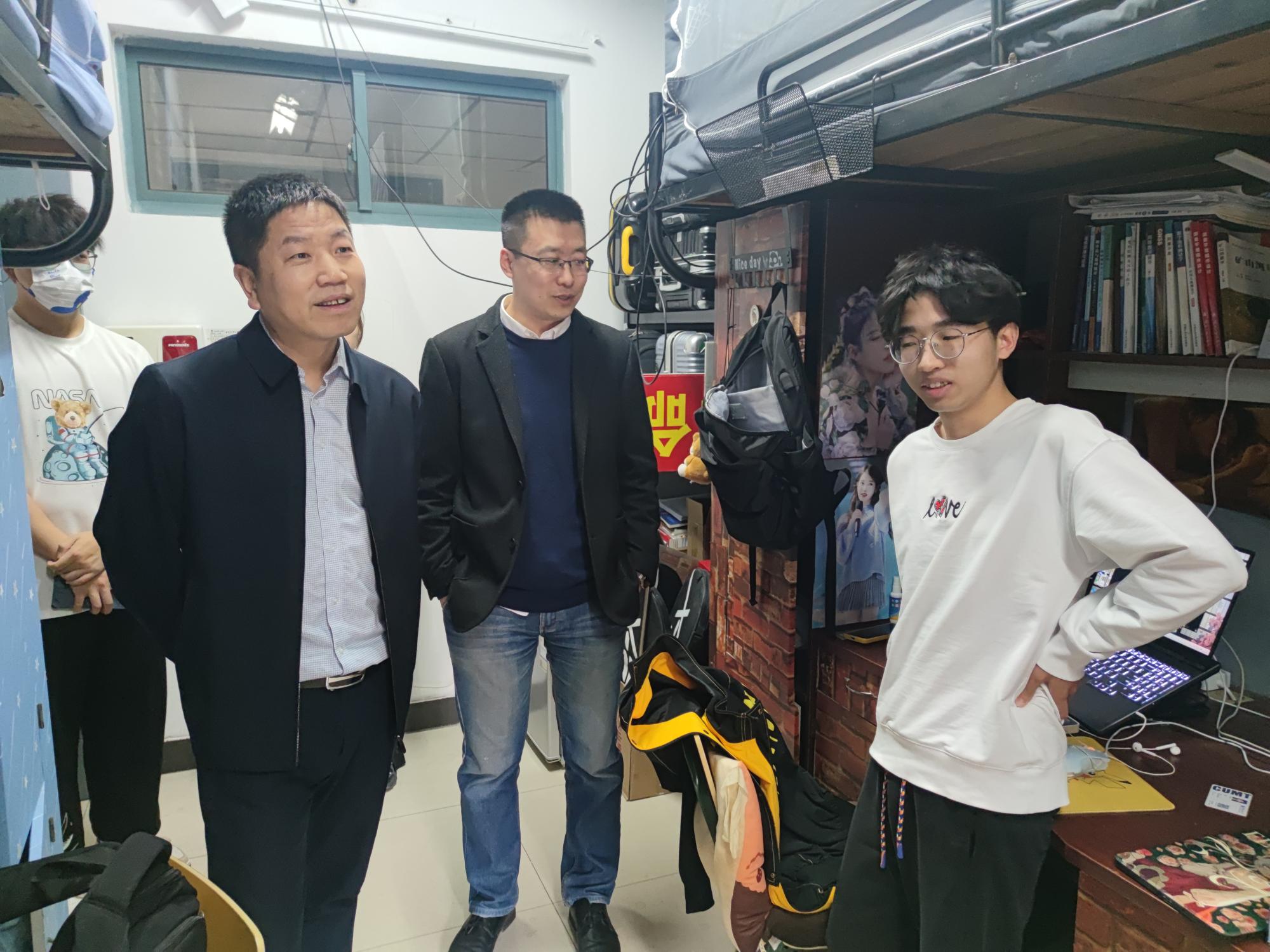 党委书记王守刚、党委副书记韩福顺及辅导员老师进行了本科生宿舍走访工作。