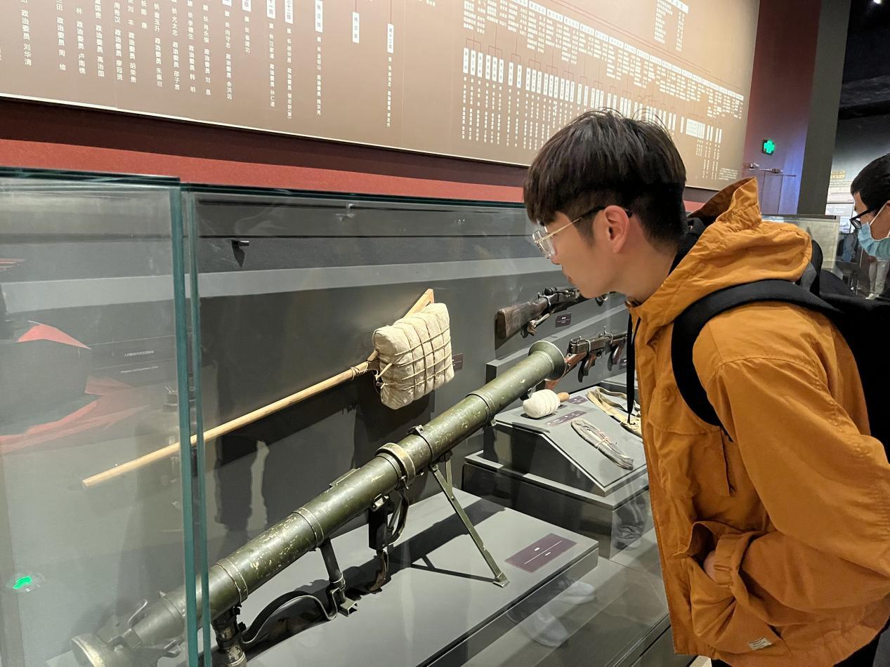 活动最后,同学们参观了双拥展览馆和淮海战役纪念馆。展览馆除了展示革命初期、抗战时期、解放战争时期、抗美援朝时期以及改革开放后徐州市的双拥工作之外,还有双拥人物、军地共建等不同主题。纪念馆内陈列分正厅、序言、战役实施、人民支前、缅怀先烈五个部分,拥有藏品2万余件,主要为淮海战役期间的纸、布、铁、皮等质地的文物和历史图片、史料及国家领导人、社会知名人士的题词、书画作品等,其中尤以战役期间的命令、日记、地图、武器装备、支前用品、领导人题词等藏品弥为珍贵。从这些藏品可以看出此次战争规模之大、战争环境之艰辛、革命前辈伟大之处。通过军民之间充分融合才取得了战争的胜利。