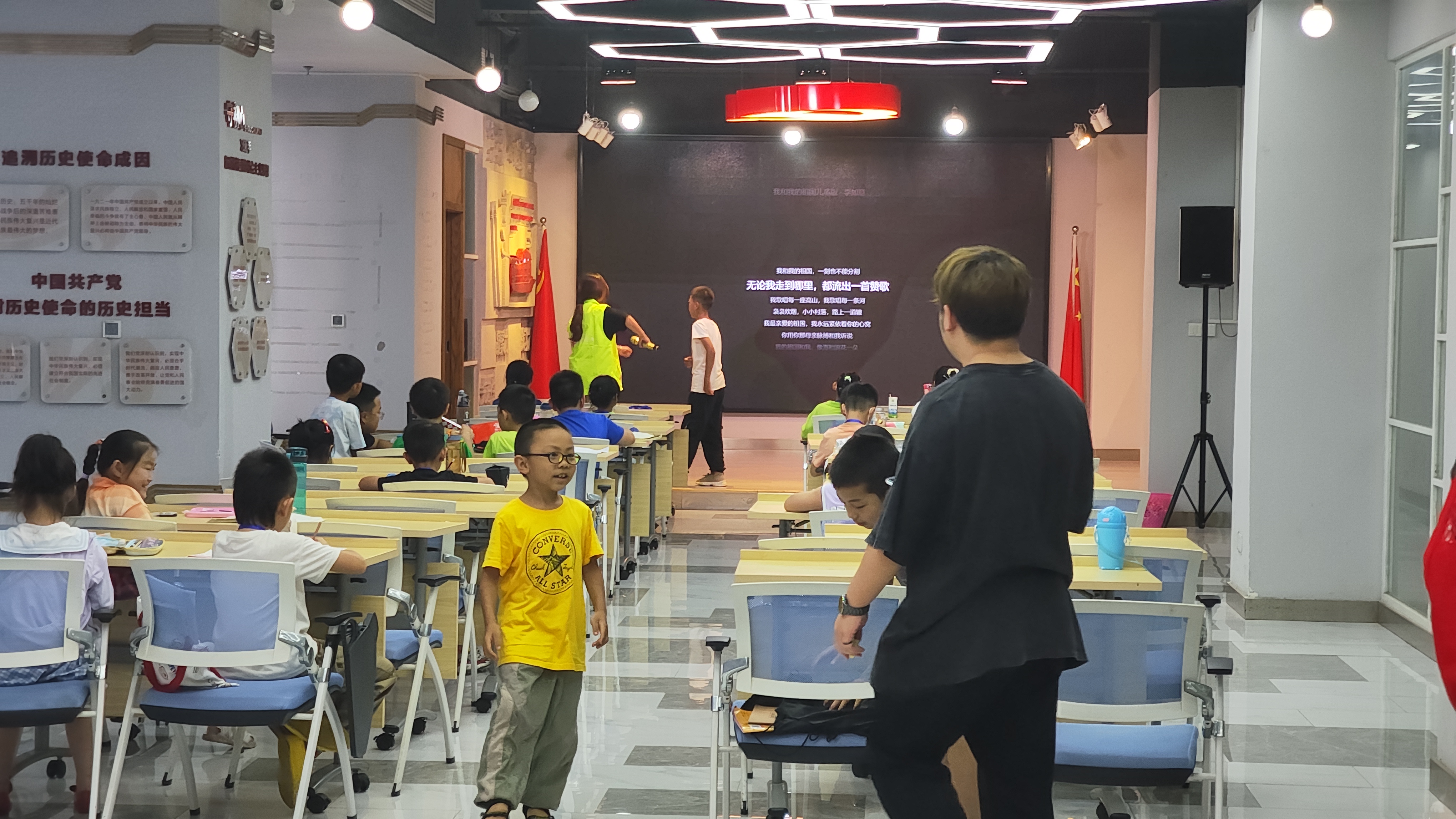 每日清晨,活动开始前,孩子们在志愿者团队的引领下,沐浴着朝阳,进入学习时间。科普知识讲解紧密结合生活实用,增强孩子们的安全意识。下午,欢声笑语中的红歌唱诵环节,让孩子们感受着国家的历史情感,唤起了他们对祖国的深情厚意。