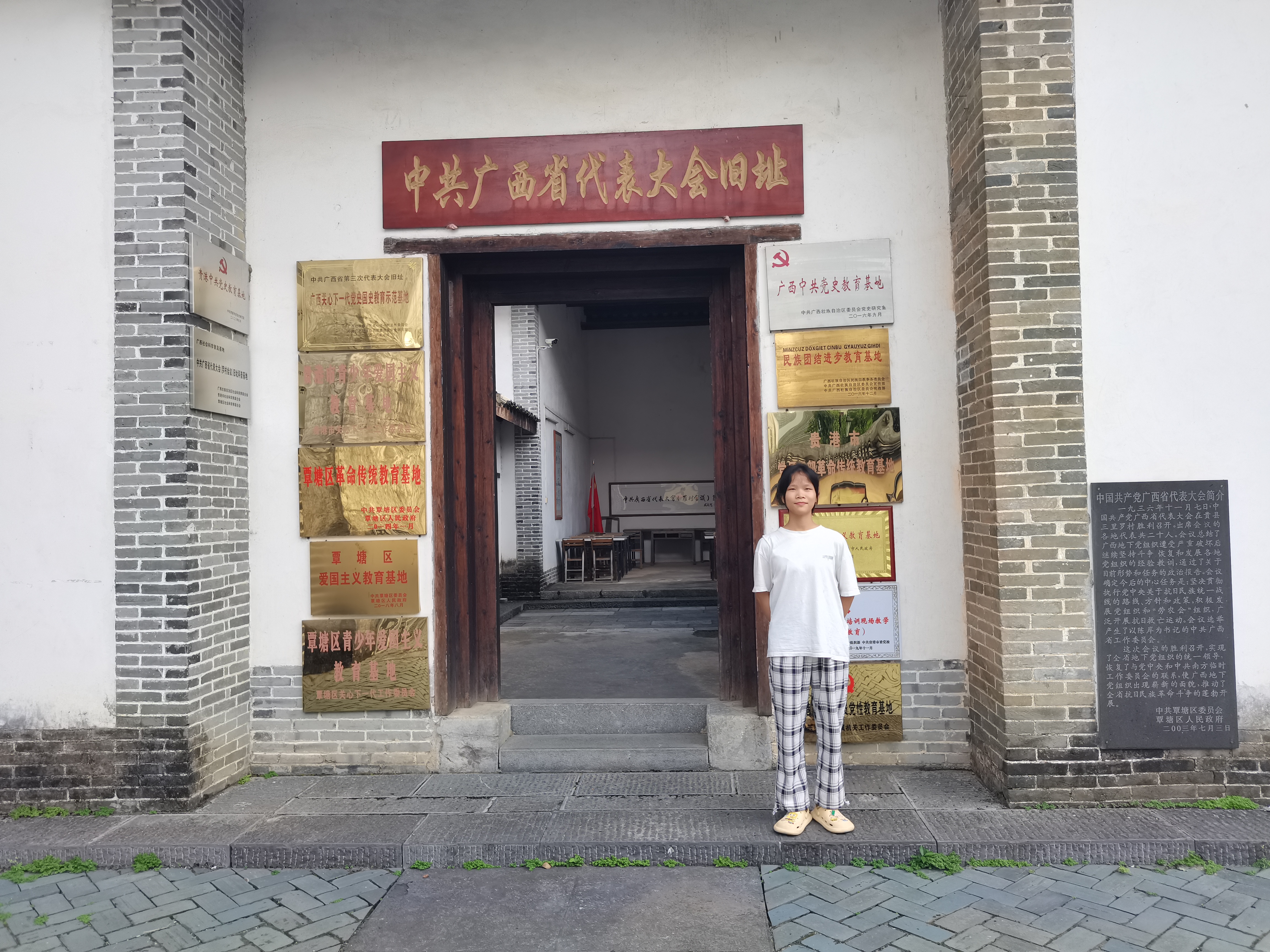 2023年8月22日,陈丽燕同学前往参观位于广西壮族自治区贵港市覃塘区罗村的中共广西壮族自治区代表大会(罗村会议)旧址,进一步坚定理想信念,传承红色基因。