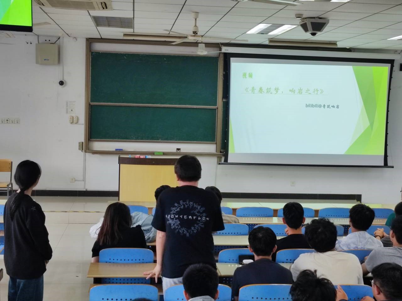 本次活动由测工二班的武蒙婉主持,通过抽选同学提问的方式,让在场的同学深刻体会到社会实践的重要性与必要性。在提问过后,本次活动邀请了孙菀心,杨昊等同学进行了交流分享,接着在活动中播放了两个视频,介绍了感动中国人物——杨宁同志带领苗乡人致富脱贫的故事,以及重庆大学几位同学在假期所做的社会实践活动,在视频播放期间同学们都有认真观看,视频结束后,同学们都若有所思,深有感悟,认识到了社会实践活动对社会存在的特别意义。