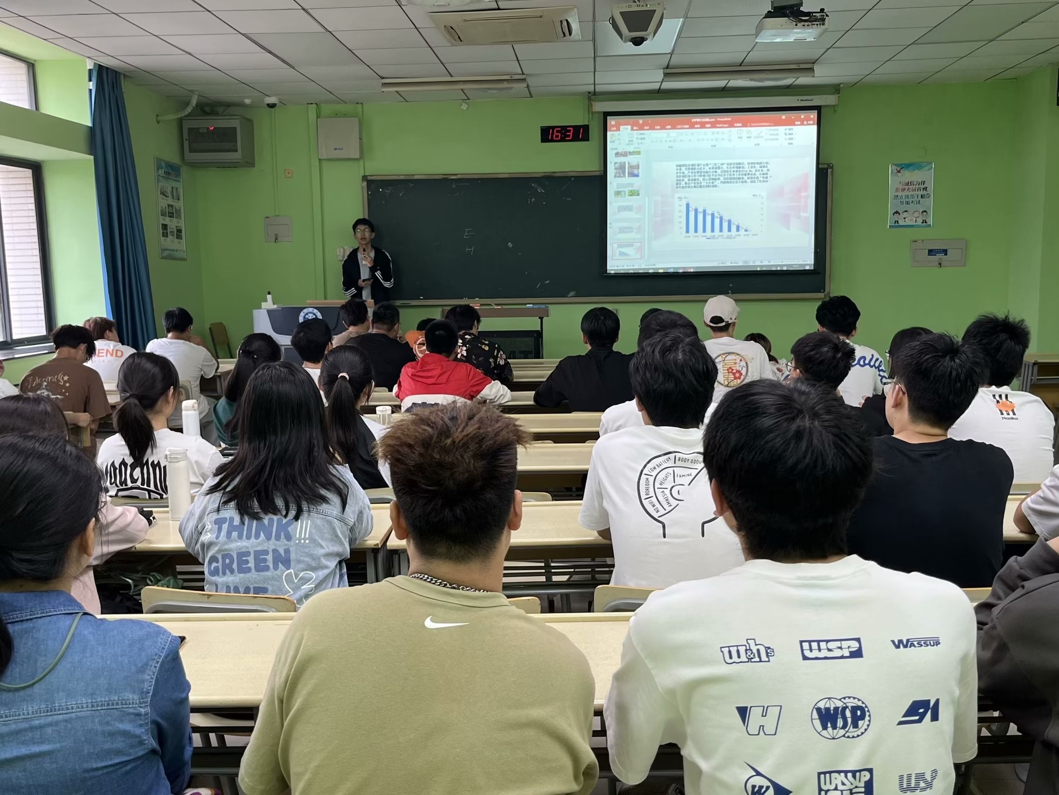活动由地信二班团支书于瑶同学主持。在活动过程中,来自地信二班的于瑶、史梦莹、樊广和来自测工四班的陈成彤、惠智杰、黄嘉睿等几位同学分别以PPT、视频、照片、文字报告等方式展示暑假社会实践中的精彩故事和收获,其中包括了下乡支教,走访扶贫攻坚地区,宣讲节水环保等实践活动。同学们或个人开展或团体组织,都取得了不错的时间结果和深刻的个人感悟,大家在交流中也得到了共同提升。