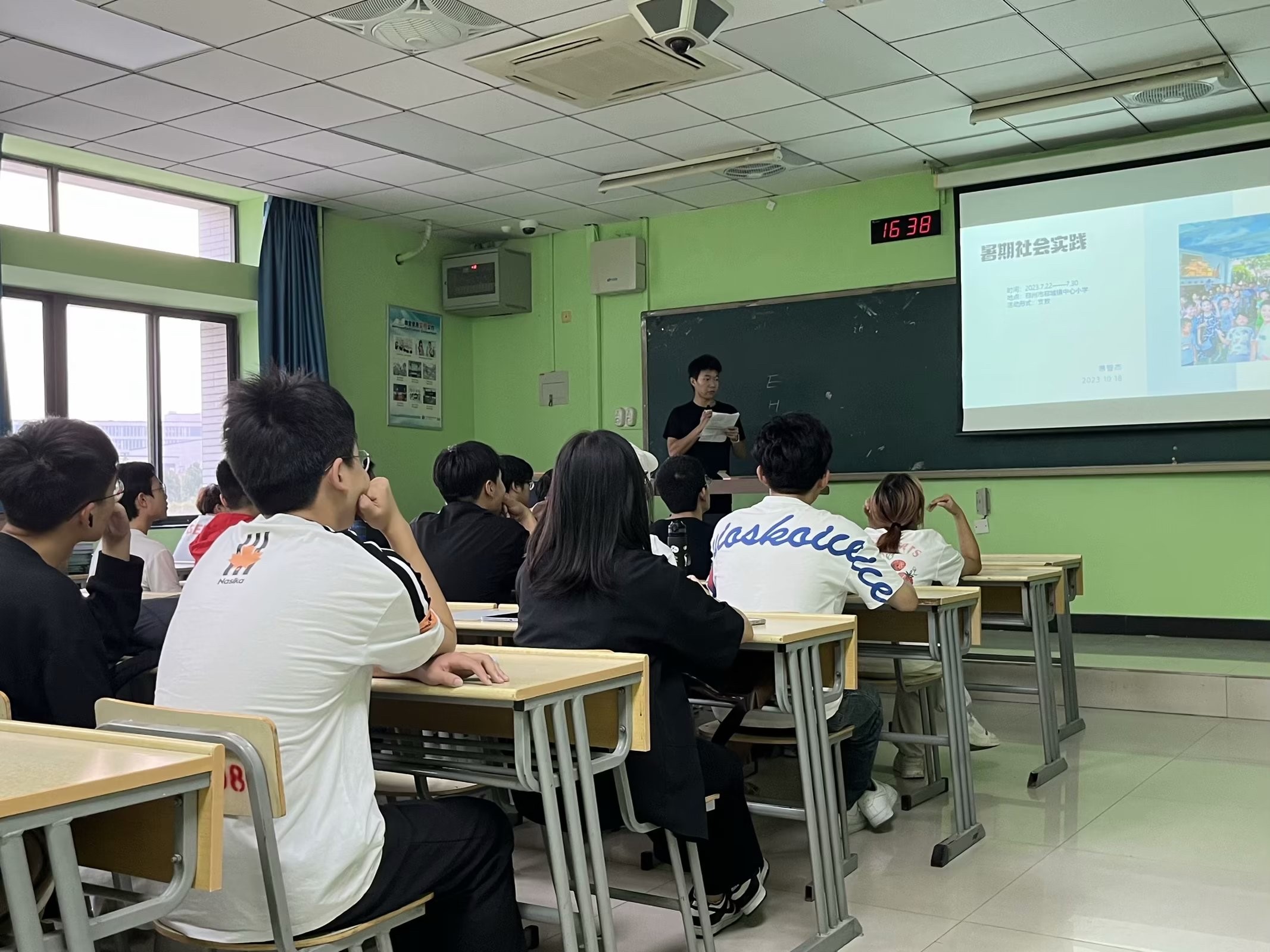 为贯彻落实习近平新时代中国特色社会主义思想和党的二十大精神,进一步引导学生深入学习实践科学发展观,不断增强同学们的社会责任感,测绘工程22-4班和地理信息科学22-2班团支部于2023年10月18日联合举办了“暑假归来话实践”为主题的团日活动。