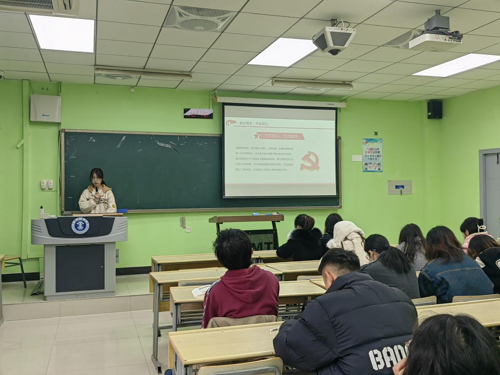 本次活动以引导同学们不忘初心、继续前进,永远铭记为民族独立、人民解放抛头颅洒热血的革命先辈为目的。活动共分为三个部分,第一部分为坚定理想信念,时刻不忘党史。本部分向同学们介绍了党从革命开始到进入新时代的整个发展历程;第二部分为铭记历史,不忘初心。本部分强调党始终将实现中华民族伟大复兴作为目标,始终勇于自我革命,坚持从严治党。第三部分为一心一意永远跟党走。本部分强调同学们要牢记入党初心,时刻自省。最后,由李亚楠同学对本次活动进行总结。