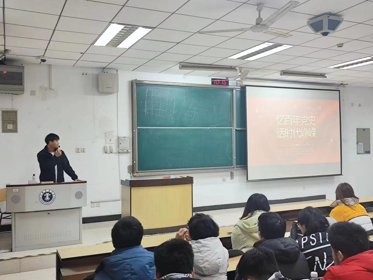 测绘工程22-02班团支部在博二B201开展“忆百年党史,话时代荣光”主题团日活动。本次团日活动由测绘工程22-01班,测绘工程22-02班,地信22-02班联合举办,由一班团支书王奥松同学进行主持。
