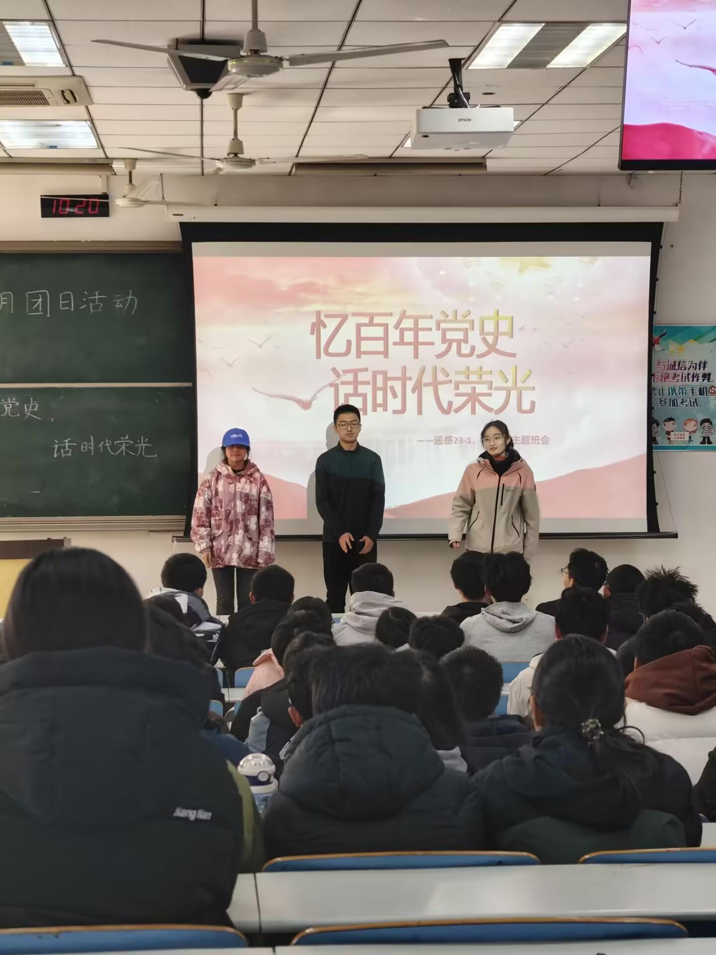 遥感科学与技术23-2团支部与遥感科学与技术23-1团支部和遥感科学与技术23-3团支部在博1C101联合举办“忆百年党史,话时代荣光”主题团日活动。此次活动由三个班级团支书张译文、王子赫、唐瑞婕主持,宣传委员翟靖源进行拍摄。