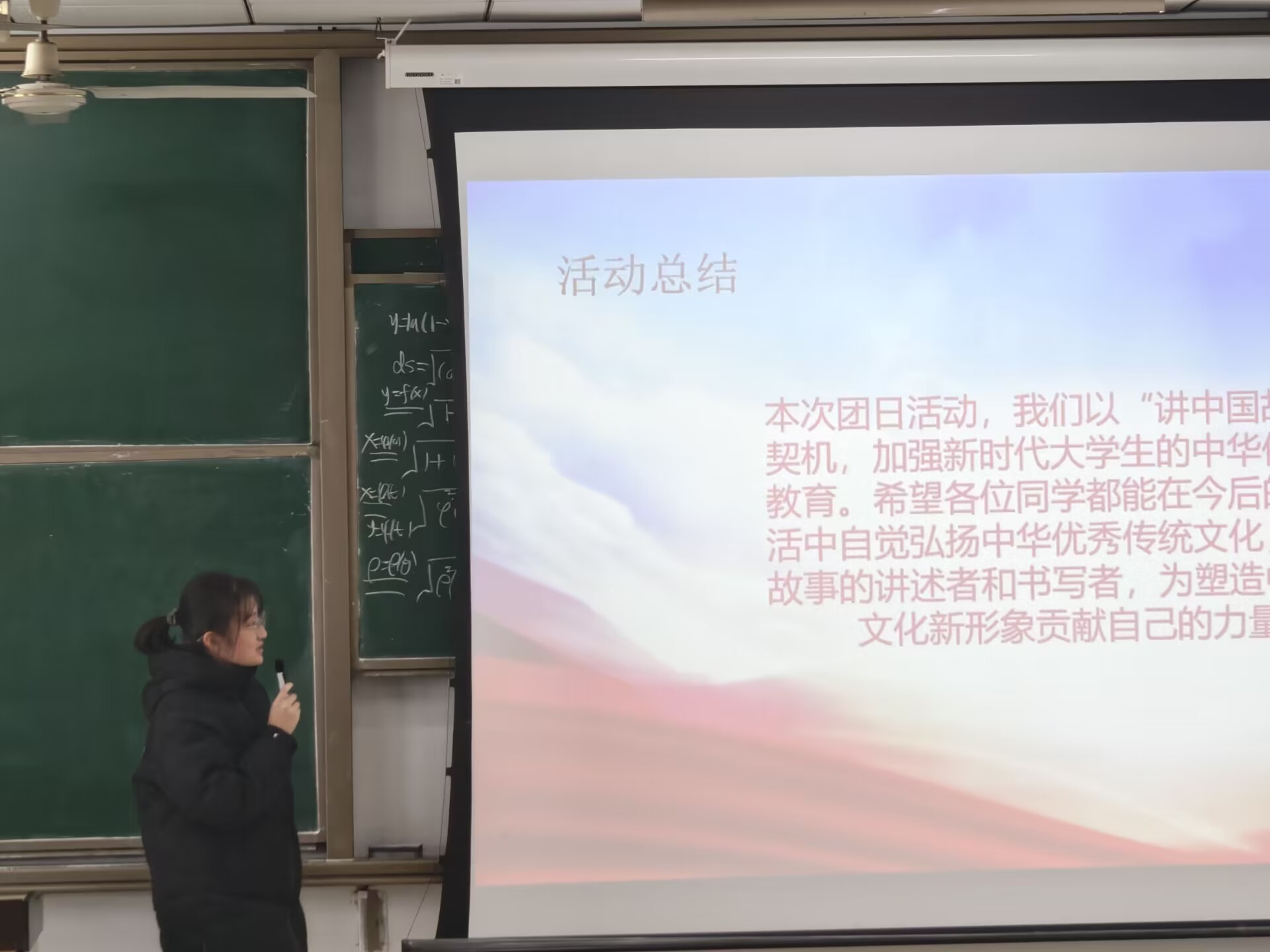本次团日活动,以“讲中国故事”为契机,加强新时代大学生的中华传统文化教育。相信各位同学都能在今后的学习生活中自觉弘扬中华优秀传统文化,做中国故事的讲述者和书写者,为塑造中国国际文化新形象贡献自己的力量。