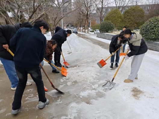 硕士地遥党支部和测绘工程党支部号召学生党员积极参与扫雪除冰行动,为保障学生出行安全贡献力量。