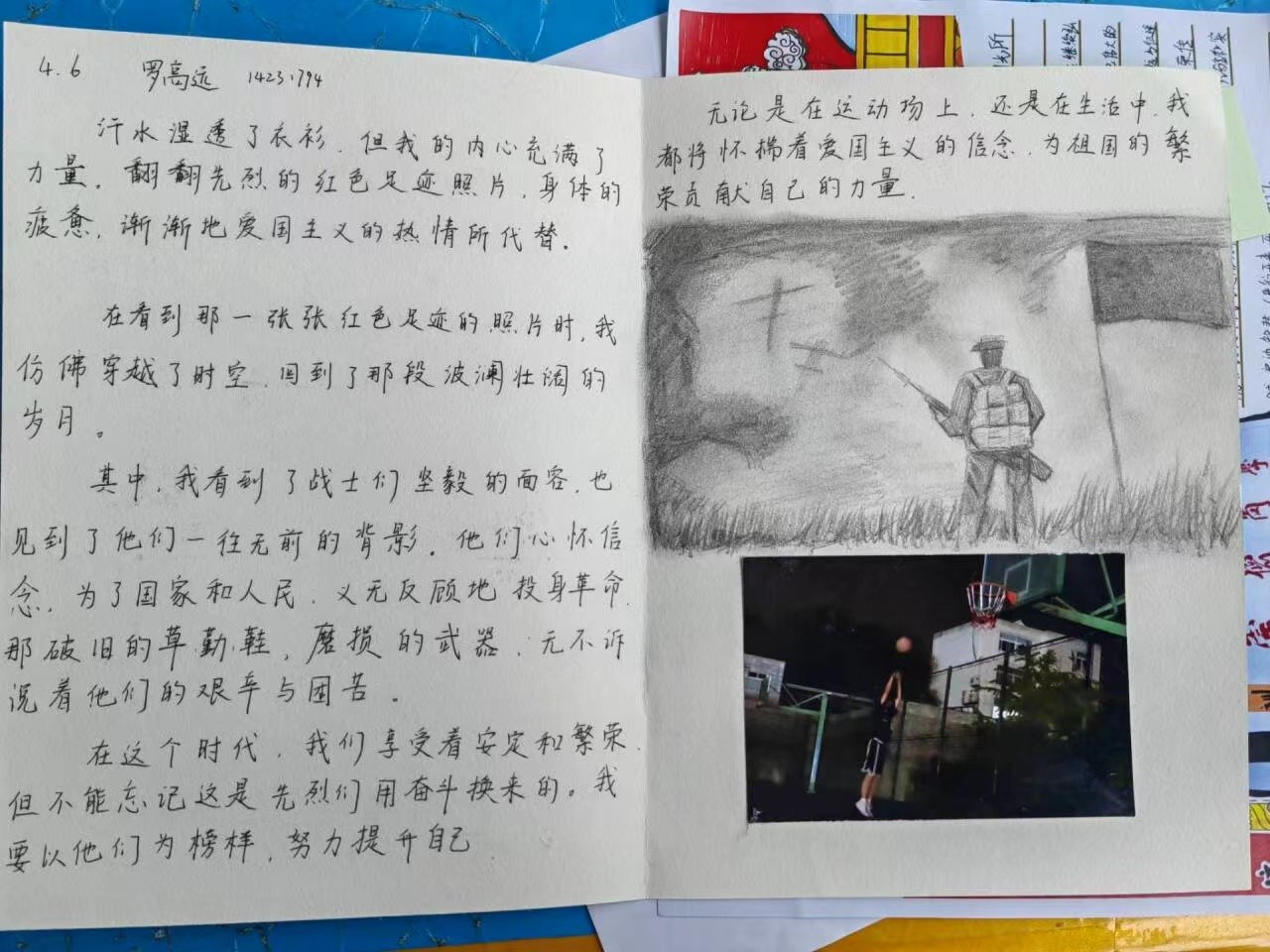 本次活动中同学们呈现出了各种各样的作品,包括摄影、手绘、文字等多种呈现方式。其中不仅展现出同学们激情高涨的爱国热情,也表现出同学们的认真与投入。作品多种多样,同学们按照要求完成,交出了一份完美的作品。