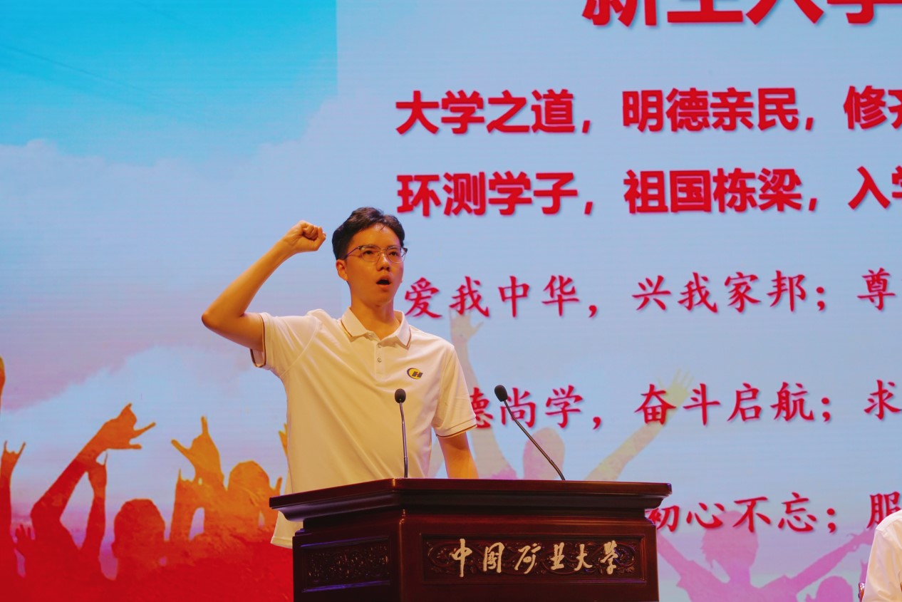 新生宣誓环节,由程梓银同学领誓,明升体育