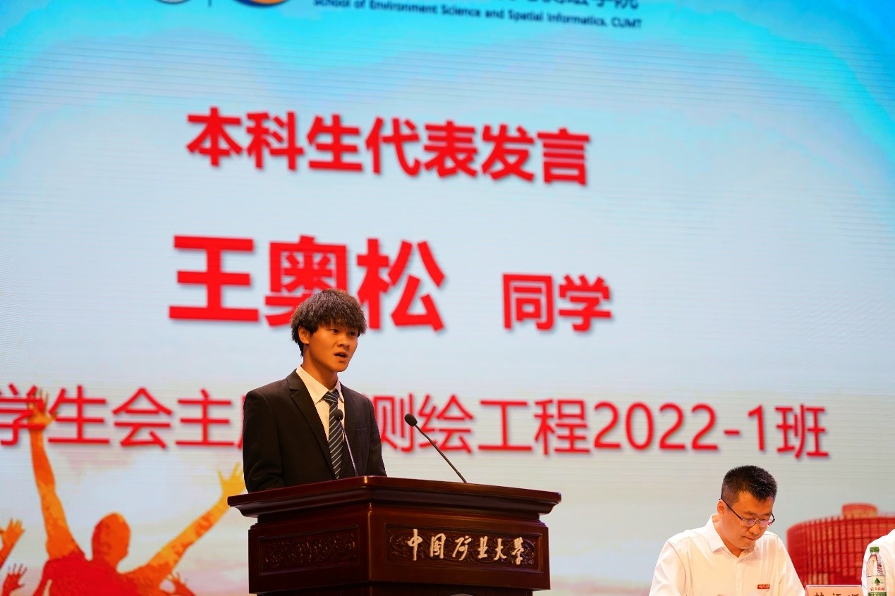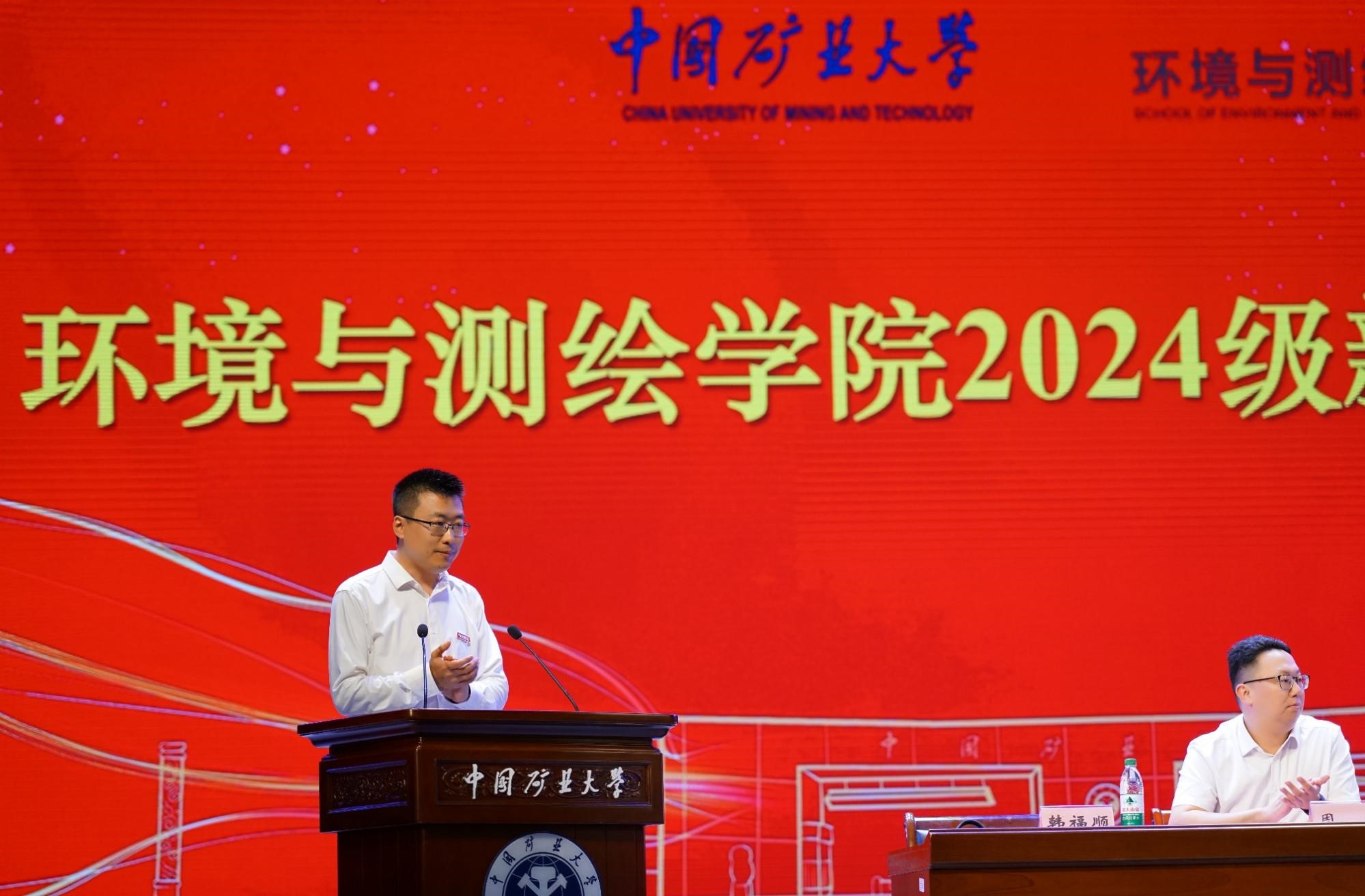 教师代表、环境科学专业负责人、矿山生态修复教育部研究中心副主任张明青教授发言,希望同学们脚踏实地、不断学习、多去实践,在矿大这片沃土上学有所获、学有所成。千寻位置网络有限公司海外事业部副总经理刘克强作为校友代表发言,他结合自己在矿大本科、硕士、博士10年的学习工作经历,勉励同学在中国矿业大学这片充满机遇与挑战的土地上,找到属于自己的舞台、实现自己的梦想。院学生会主席王奥松同学作为本科生代表结合自己对大学意义的体会,希望同学们可以在大学四年立远大理想,把握机会实现人生的无限可能。2021级环境工程博士朱燕峰代表研究生发言,他分享了自己学习和科研生活的经历与感悟,强调要拥有“感恩心、进取心、平常心”,希望同学们可以不畏艰难,一路向前。遥感科学与技术2024-4班吕子妍作为本科新生代表发言,分享了自己对矿大的印象以及对大学生涯的美好展望,希望与新生学子们共同进步。