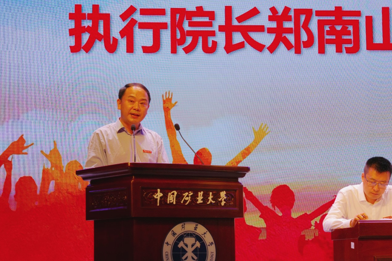 中国矿业大学副校长卞正富,国家“万人计划”教学名师高井祥,全国优秀教师、院教授委员会主任汪云甲,国际欧亚科学院院士、国家高端人才计划入选者薛勇,国际著名地球物理学家和遥感专家路中,院党委书记王守刚,执行院长郑南山,教学副院长周来,科研副院长王潜心,行政副院长郭东出席典礼,学院各专业教师代表、新生班主任、全体辅导员和全体新生参加此次典礼。开学典礼由院党委副书记韩福顺主持。