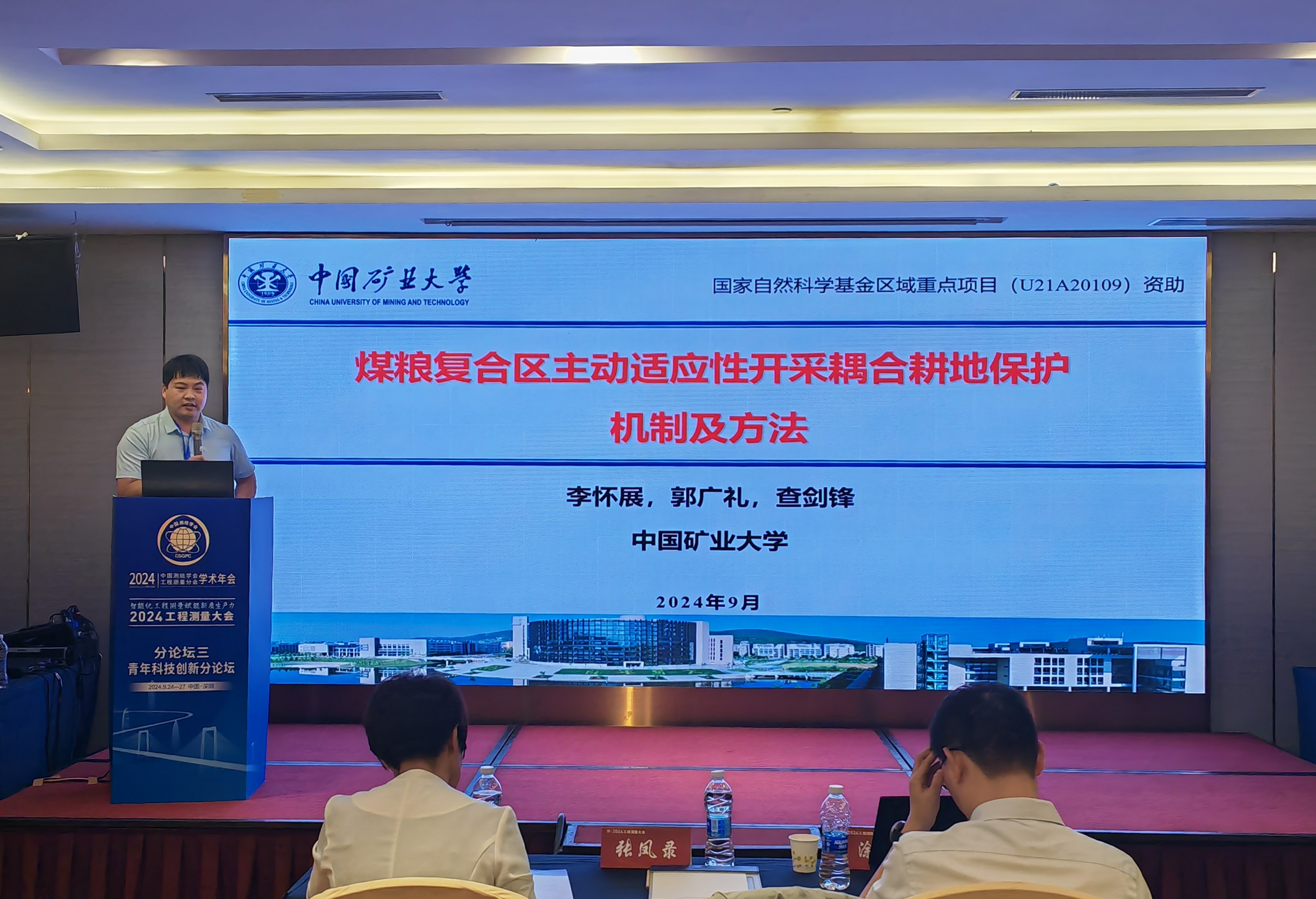 教师张秋昭教授、周大伟教授、李怀展教授、李冠青老师及唐超博士参加了本次年会,其中李怀展教授作题为“煤粮复合区主动适应性开采耦合耕地保护机制及方法”的学术报告。