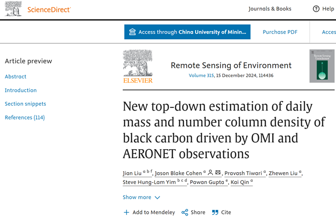 论文题目为“New top-down estimation of daily mass and number column density of black carbon driven by OMI and AERONET observations”,明升(M88)体育-明升博彩