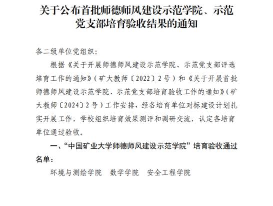 近日,学校公布了首批师德师风建设示范学院、示范党支部培育验收结果的通知名单,明升体育