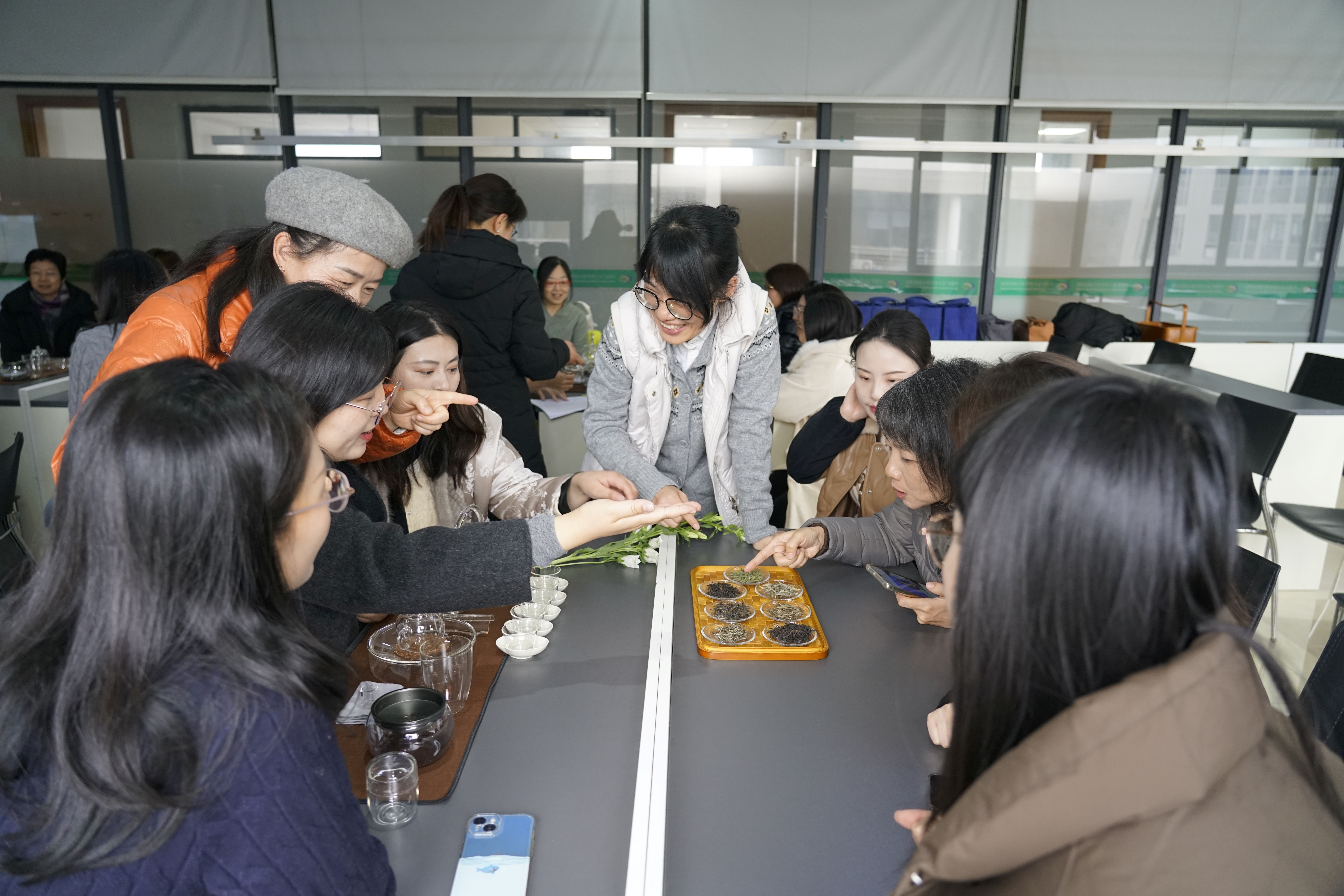 活动现场气氛热烈,老师们在茶艺师的带领下,学习了茶文化的相关知识,从温杯、投茶到注水、分茶,每一个动作都诠释着“和静清寂”的茶道精神。品鉴环节中,老师们分组围坐,亲手体验泡茶乐趣,在茶汤的流转中感受慢生活的诗意。