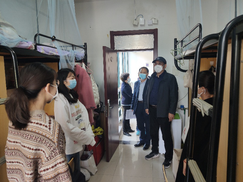 在宿舍区,学院领导老师们详细地询问了同学们疫情期间期在线学习的情况,返校的行程,毕业生的升学和就业情况,以及返校后家长们的想法。仔细检查了学生宿舍安全、卫生和消毒状况,嘱咐同学们疫情防控期间要遵守学校的相关规定,保持个人卫生,做好宿舍的通风和消毒,按时完成晨午检和晚点名。和同学们强调,疫情防控和学习要一起抓,要时刻保持良好学习的状态,认真完成学业与科研任务,不能放松。