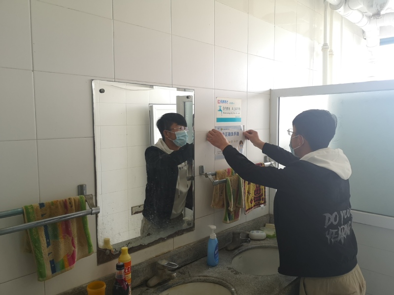 首先,学院向各寝室分发并张贴了“晨、午”体温检查登记表,并由先锋督查岗负责巡查并随机抽查体温,以便发现异常能及时控制情况,第一时间进行上报处理。此外,院学生会生活部也对新冠疫情防控知识进行宣讲,并发放疫情防控重要提醒与突发情况应急处理小贴士,监督学生粘贴于宿舍门后,并提醒宿舍长做好督促工作。与此同时,学院还通过在楼间宣传栏张贴标语,设立值班点等方式,进一步落实防疫工作。在学院的安排下,各位同学积极认真地参与到疫情防控工作中,对自己的工作赋予高度的责任感使命感,力求工作细致,服务周到,坚决落实好学院的相关要求。