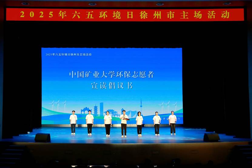 为深入学习宣传贯彻习近平生态文明思想,推动生态文明教育进校园,进一步引导全社会支持和参与生态环境保护,共同建设美丽中国,6月5日,由徐州市生态环境局和我校联合主办的徐州生态环境宣传周启动仪式暨徐州市六五环境日主场活动在我校明徳礼堂举行。我校副校长卞正富、徐州市人民政府副秘书长秦飞、相关部门负责人出席启动仪式。