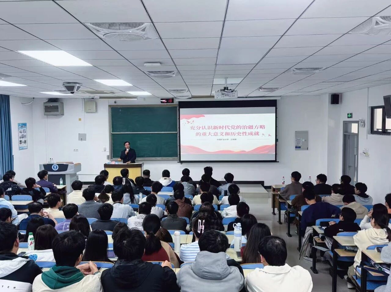 本次课程紧扣国家战略部署与高校育人使命,助力学生深刻理解新疆工作的全局性战略地位。授课中,王增国结合新疆地理区位特征、历史文化脉络、资源禀赋优势及国家战略布局,细致梳理新疆发展与治理的历史逻辑、现实路径与未来方向,并从“新疆的战略地位”、“历史治理经验”、“党治疆历程”、“新时代方略与成就”、“青年担当”五个维度展开系统阐释。王增国指出,中国共产党在不同历史时期始终坚持实事求是,立足新疆地域特点与民族实际,持续推进治疆理念、制度与实践的创新发展。新时代以来,在党的治疆方略指引下,新疆实现社会治理、民族团结、经济发展、民生保障的历史性变革。他勉励全体学子要坚定理想信念,厚植家国情怀,将个人发展融入国家战略,以专业所长与青春力量助力建设团结和谐、繁荣富裕、文明进步、安居乐业、生态良好的新时代中国特色社会主义新疆。