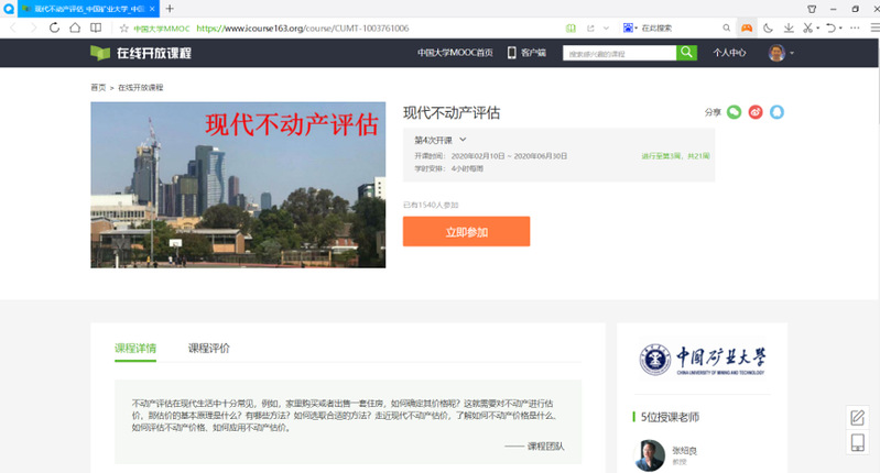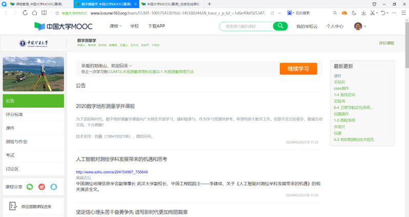 高井祥、张绍良、张书毕教授课程教学团队在中国大学MOOC网提供三门在线课程资源,分别是《数字测量学》、《现代不动产评估》和《误差理论与测量平差基础》。这些课程通过前期建设,在中国大学MOOC(//www.icourse163.org/)网站提供在线教学环境和教学资源共享,战“疫”时期三门课程均对全社会公开开放服务,共克时艰,在线学习者数量累计超过6000名。中国大学MOOC课程平台提供了教学知识点视频、教学幻灯片PPT资料、测验和作业、课程相关知识资讯等线上资源。同时,教学团队还提供了线上讨论、答疑解惑交流等形式多样的教学服务。网络学习资源不仅传播知识,是课程教学的重要资源,同时也积极运用互联网凸显新时代社会科技发展。努力做到“师者,所以传道授业解惑也”,为社会学习者提供 “学习没有界限,越是在困难的时候越要珍惜学习的机会”的优质资源。