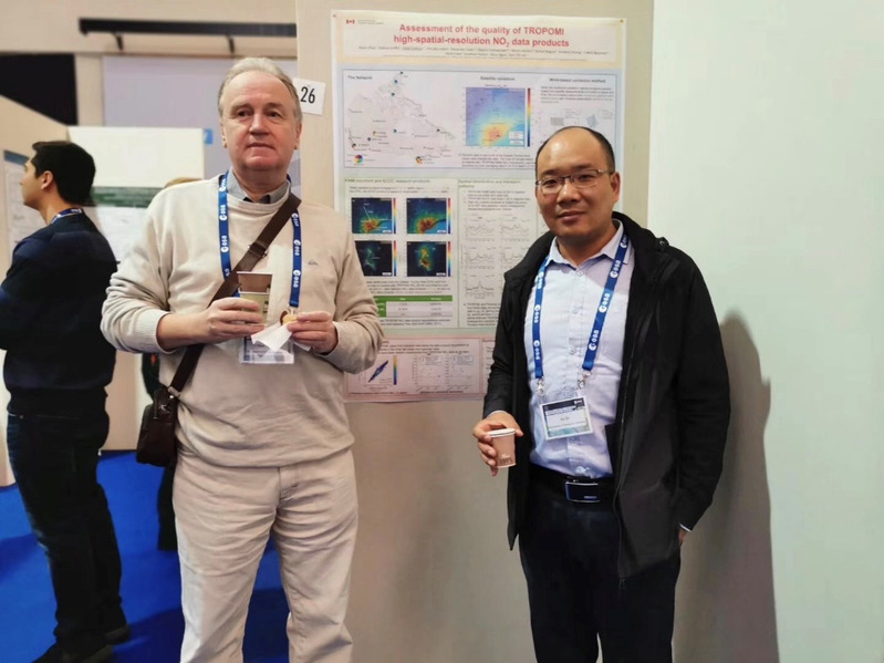 秦凯副教授及其硕士研究生何秦参加了本次会议。13日下午,秦凯副教授做了题为“Evaluation of TROPOMI Tropospheric NO2 VCDs over Xuzhou, China”的口头学术报告,报告展示了一年半来哨兵5号先导卫星的对流层NO2柱浓度产品在徐州地区的验证结果及其在中国广阔的应用场景。