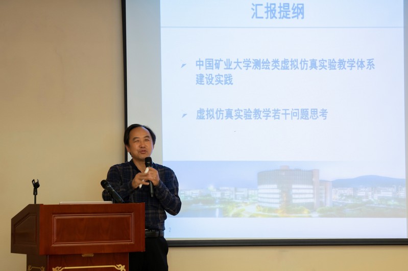 汪云甲教授应邀作了“虚拟仿真实验教学体系建设实践与思考”大会报告。报告会上,汪教授介绍了我校矿山测量虚拟仿真实验教学中心的建设实践和成效,分享了科教融合、虚实结合和产学研联合的虚拟仿真实验教学资源的建设经验,提出了5G时代下“特色教材+课程云平台+移动交互端+虚拟仿真模块”的建设思路,探讨了虚拟仿真实验教学中心可持续发展等问题,得到了与会专家的强烈反响。