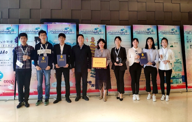 因组织参加比赛的队伍数量最多、参赛选手作品优异等,获得本次大赛的“最佳组织奖”。姜永祯,郝子傲,束寅慧,翟浩然四位同学陆续上台进行作品展示,同学们的作品得到了评委们的肯定。其中,翟浩然队的平面设计类作品“让水更清,让天更蓝”、米艺华队的科普文章类作品“生活污水处理——水哥奇遇记”荣获二等奖;郝子傲队的平面设计类作品“变小的老杀手——水中的PM2.5”荣获三等奖;束寅惠队的科普文章类作品“一条小河的自述”荣获优秀单项奖。