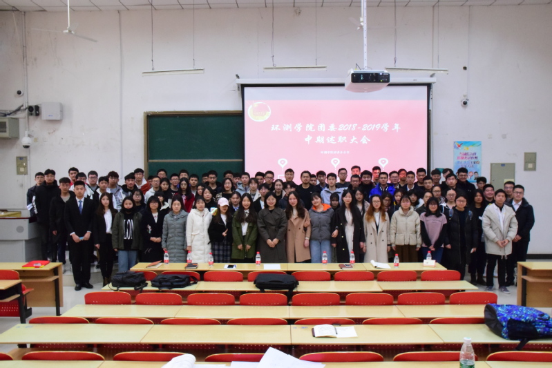 团委2018-2019学年中期述职大会在博二C101召开。此次会议旨在总结团委各部门上半年工作,发现问题并明确方向,统一新学期开展团学工作的共识。学院党委副书记王守刚、团委书记于海霞参加会议,院团委全体成员到场参会。