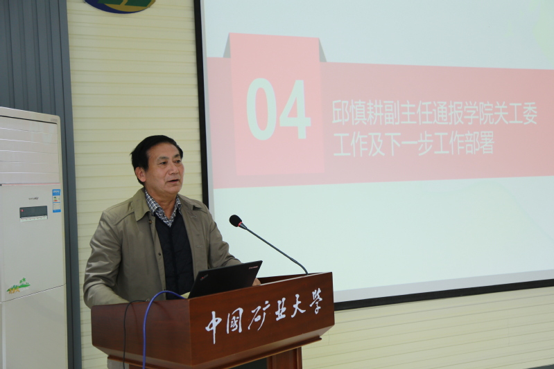院关工委常务副主任邱慎耕就学院近一个时期内关工委开展的各项工作进行了通报,并指出下阶段学院关工委工作的重点方向,明确申报关工委常态化建设巩固提高奖的有关工作内容。