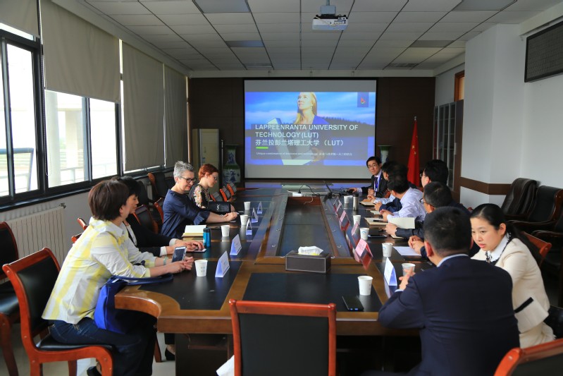 4月26日,芬兰拉彭兰塔市副市长Alina Kujansivu、国际合作事务协调员Kati Korhonen和芬兰拉彭兰塔理工大学中国专员师兴一行3人来明升体育