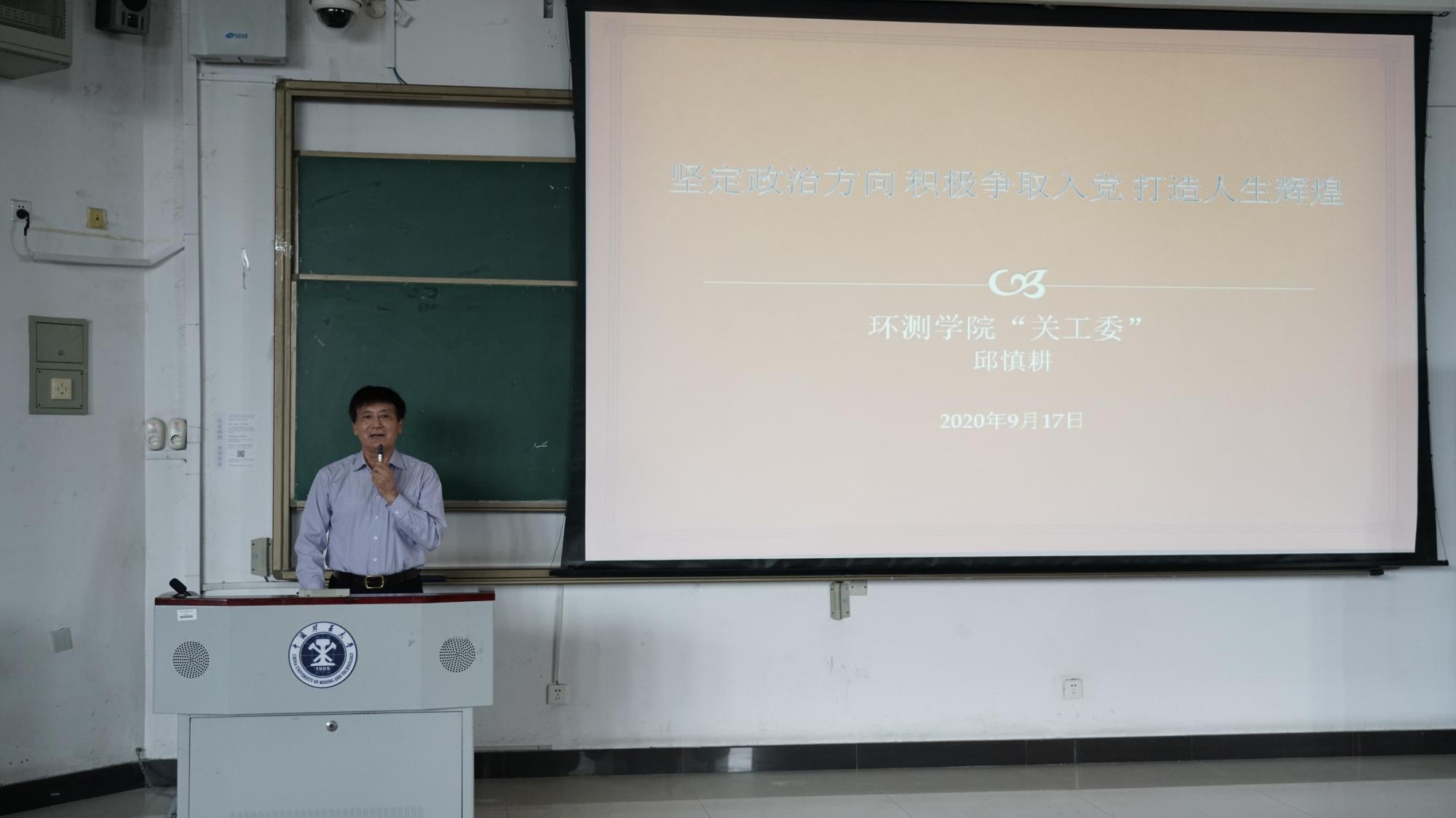 关工委常务副主任、校特邀党建组织员邱慎耕老师主讲,20级辅导员张莹老师主持,20级明升体育
