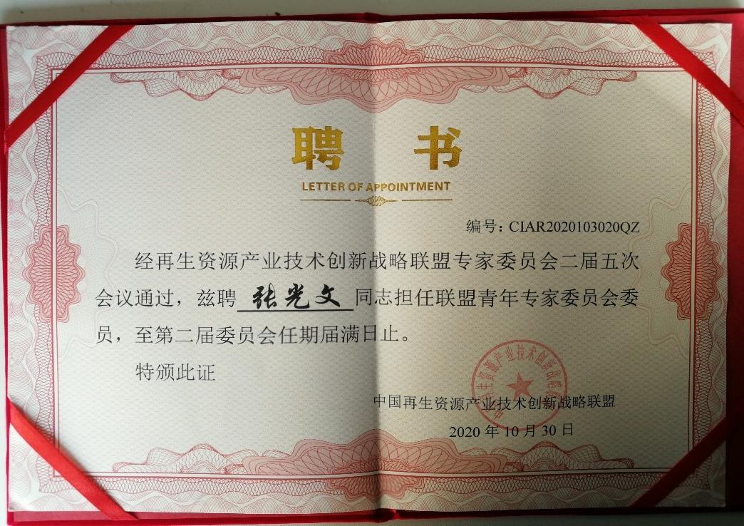 教师张光文参加会议并由“联盟二届五次理事会暨专家委员会会议”审议通过增选为“联盟青年专家委员会委员”。
