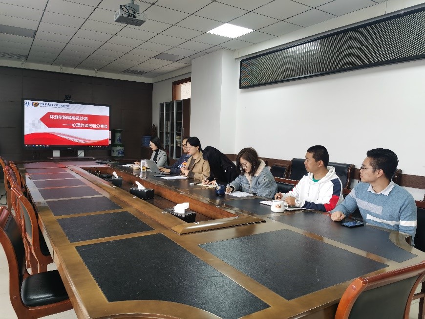 于学院楼A506召开“辅导员沙龙——心理约谈经验”分享会,学院各年级专兼职辅导员参与会议,会议由学院学工办主任于海霞主持。