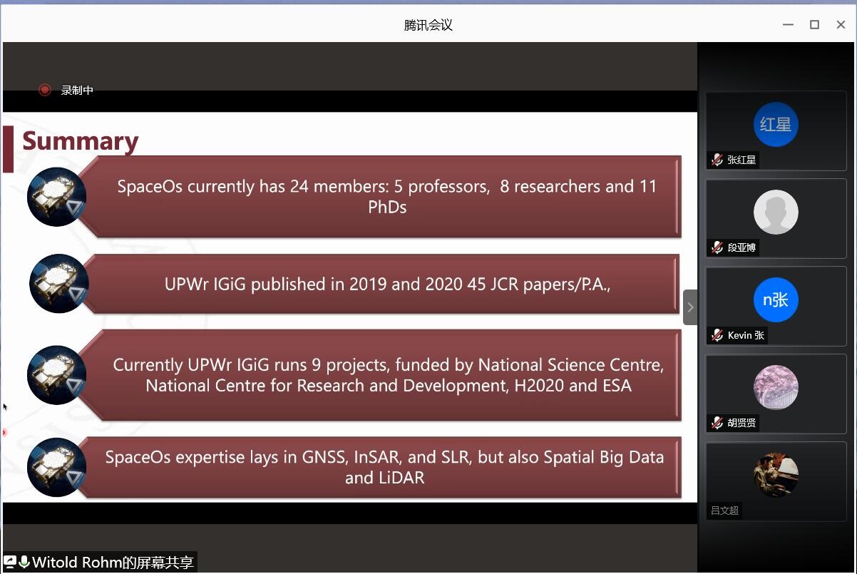 师生作了题为“Leading Research Group SpaceOs at UPWr: use of GNSS, SLR, InSAR in Earth Science”的线上学术报告,报告由张克非教授主持,明升体育