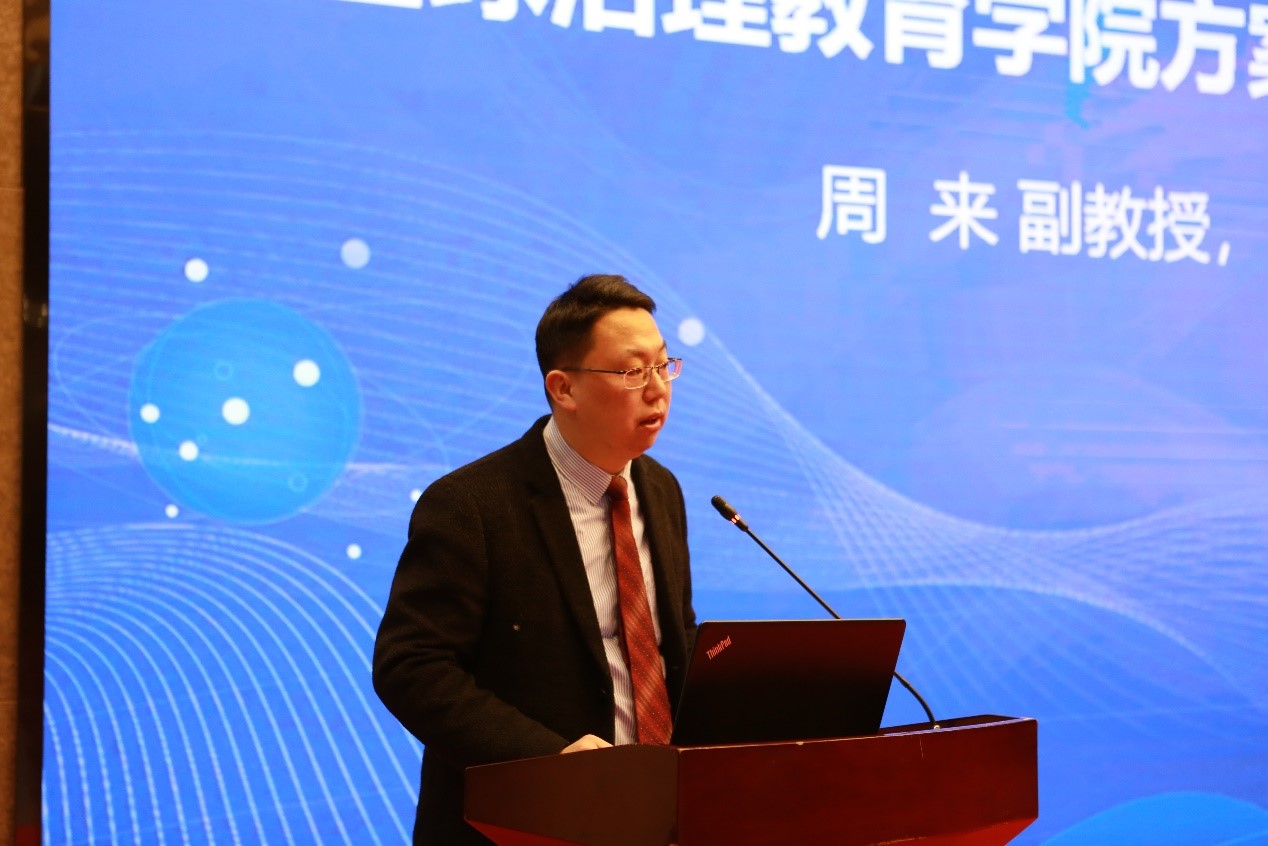 在本科生学术导师制启动仪式上,周来副院长介绍了国际组织人才培养创新实践——“全球治理教育学院”项目,对2017级导师制实施情况进行总结,指出学院将继续推进高年级学术导师制和新生生涯导师制项目,积极打造创新创业的第二课堂和师生共同体,促进学生个性发展。之后,导师代表高丽慧老师和学生代表郭强、白松分别进行发言。