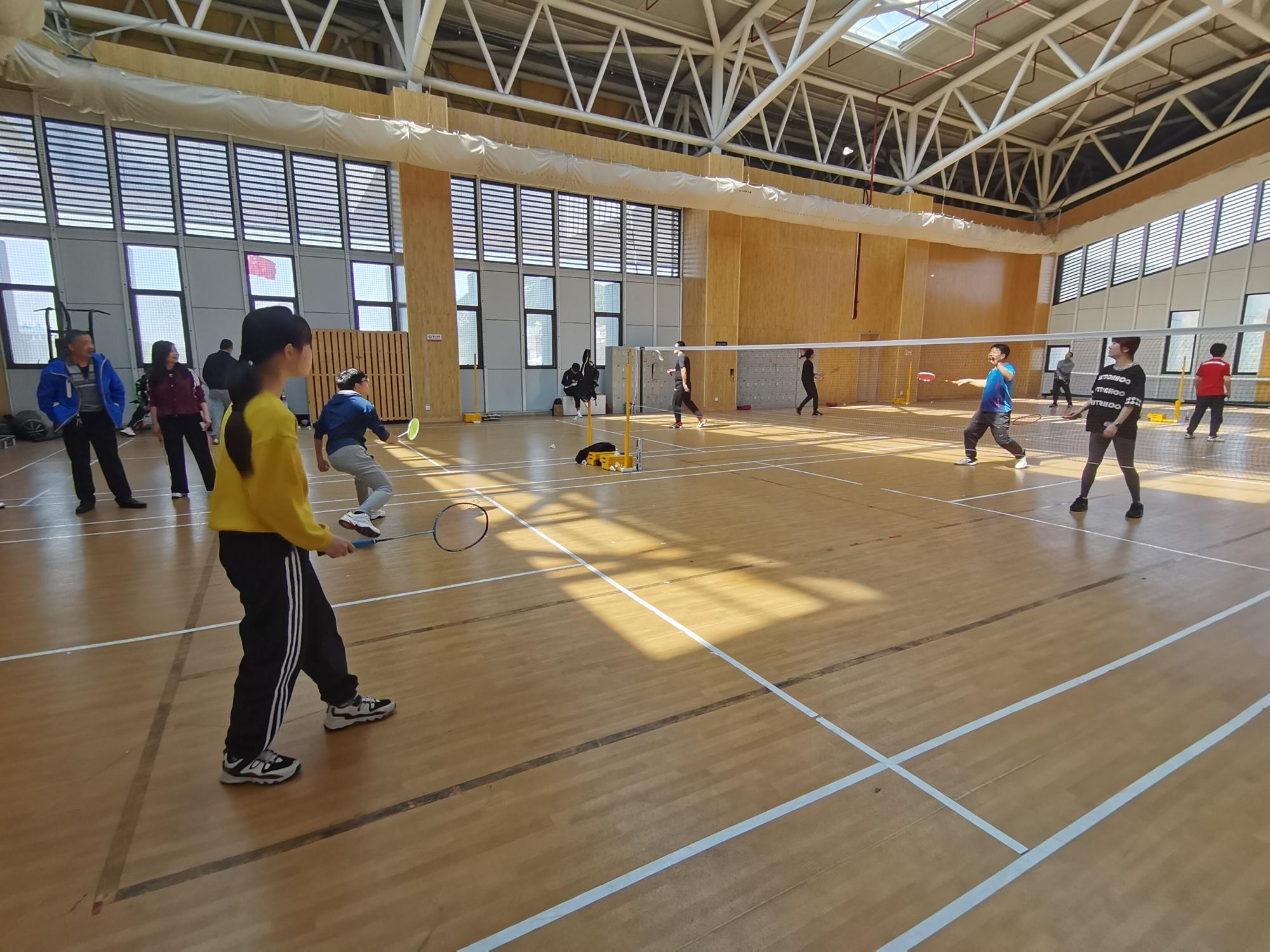 本次比赛由教师和学生自由组队,采取21分赛制,三局两胜,进行男双、女双和混双交流。在比赛间隙,老师们与同学们交流打球心得和技巧,氛围和谐温馨。尤其是在活动尾声,吴侃老师、王中元老师、熊集兵老师和李亮老师为各位同学奉上了一场精彩的比赛,扣杀、劈杀、吊球等各路球技展现的淋漓尽致,博得同学们的阵阵欢呼。