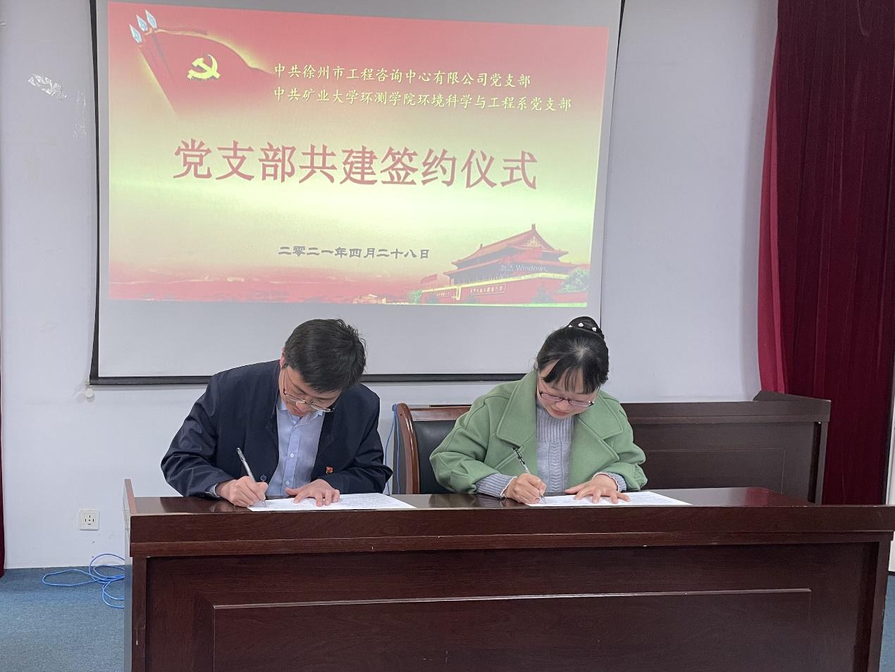 环境科学与工程系党支部共建签约仪式在环测楼C410会议室顺利举行。徐州市工程咨询中心有限公司总经理兼党支部副书记汤勇、副总经理阳魁、环评部部长张宝、党群与人力资源部党群负责人朱雅雯,明升体育